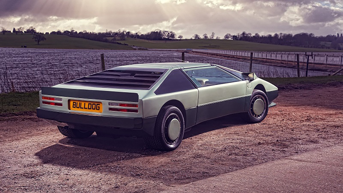 O design em cunha do Bulldog foi elaborado por William Towns e a frente tem a forma distinta de ter cinco faróis ao centro, que ficam escondidos. O acesso ao interior é feito através de duas portas de abertura em “asas de gaivota”. No interior, que conta com volante à esquerda, é todo estofado em pele e tem vários botões em LED, tal como o Aston Martin Lagonda.