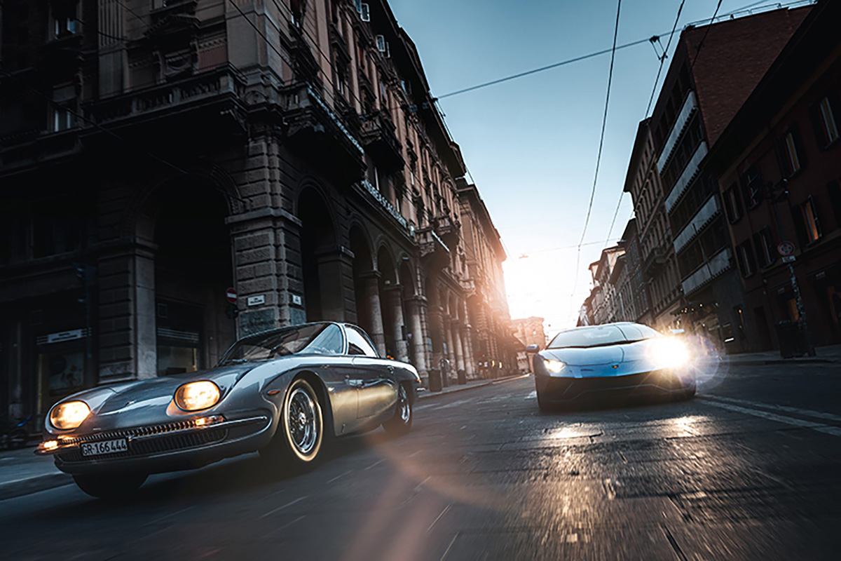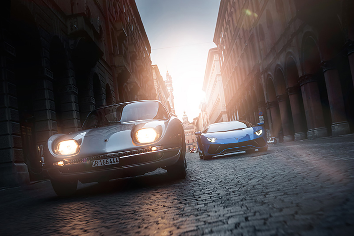 Antes de entrar na fase da hibridização, em 2023, com o advento do primeiro modelo de produção em série do género, a Lamborghini presta tributo ao seu mais memorável motor, através de uma retrospetiva dos modelos que o tinham montado. O primeiro Lamborghini de sempre a sair da fábrica de Sant’Agata Bolognese, em 1964, foi o 350 GT, mais recentemente levado para o centro histórico de Bolonha para um encontro épico com o mais recente V12 da história da marca, o Aventador Ultimae.