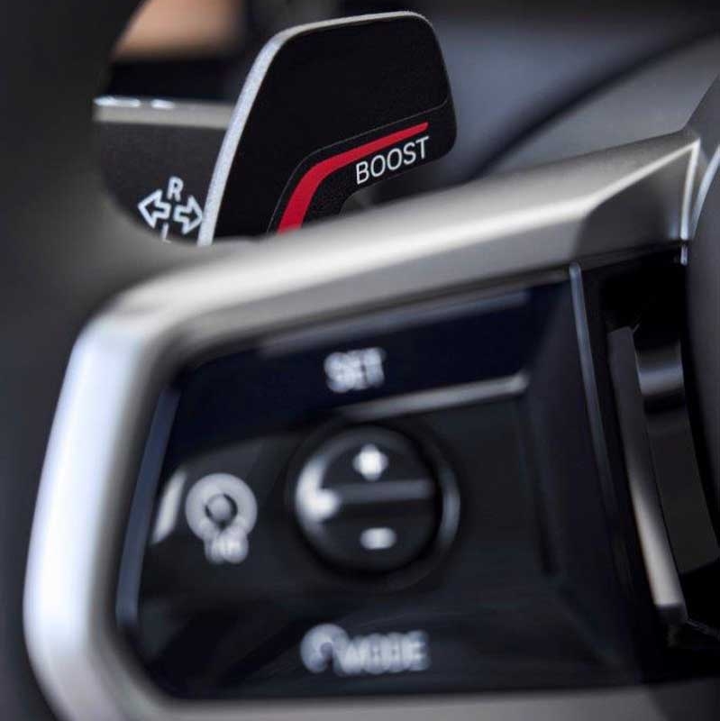 Potência não falta ao eDrive 40 que, ainda assim, tem um comando “boost” posicionado à esquerda do volante. Trata-se de uma patilha com um design em tudo idêntica a uma patilha de controlo de uma caixa de velocidades que, uma vez acionada, dá ao i5 um súbito e extra pulmão, passando a oferecer 430 Nm de binário (mais 30 Nm de binário durante 10 segundos) e 340 cv de potência, os quais elevam a velocidade de rolamento a outro nível, em menos de um segundo, estilo “launch control”. Para ultrapassagens é uma funcionalidade perfeita. Experimentámos e gostámos.