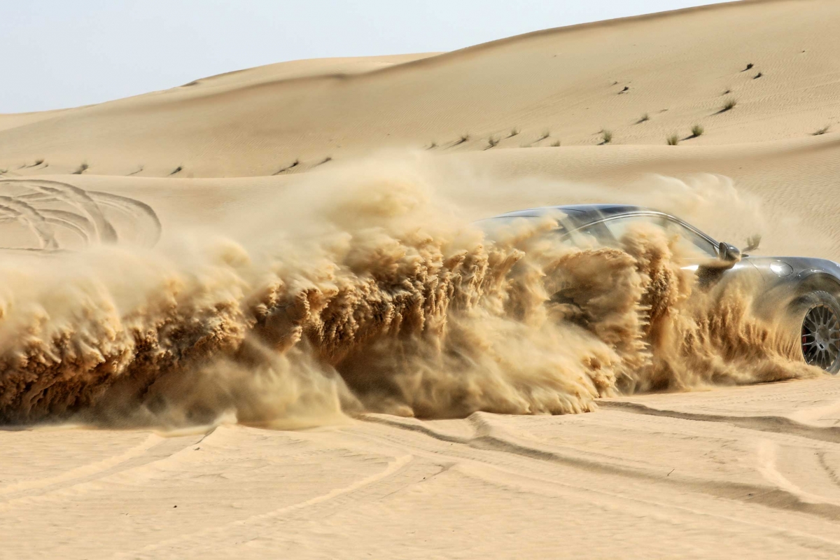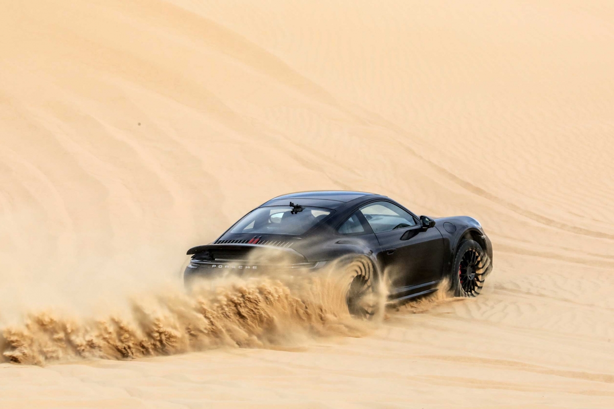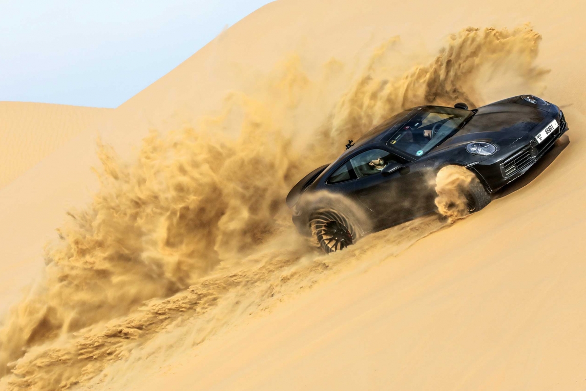O novo 911 Dakar também teve de provar o seu valor na areia do deserto. No Dubai e em Marrocos, os pilotos de testes conduziram o desportivo, vezes sem conta e sem piedade, por dunas íngremes de 50 metros com temperaturas de até 45 graus. “O 911 Dakar apresentou uma impressionante performance mesmo no deserto”, refere Frank Moser, Vice President Model Line 911/718. “Especialmente aqui, o 911 Dakar pode aproveitar ao máximo as suas vantagens conceptuais – a combinação de baixo peso, uma maior altura ao solo, um potente motor na traseira e a curta distância entre eixos proporcionam uma experiência de condução entusiasmante. Eu próprio pude experimentá-lo em test drives no Sahara”.