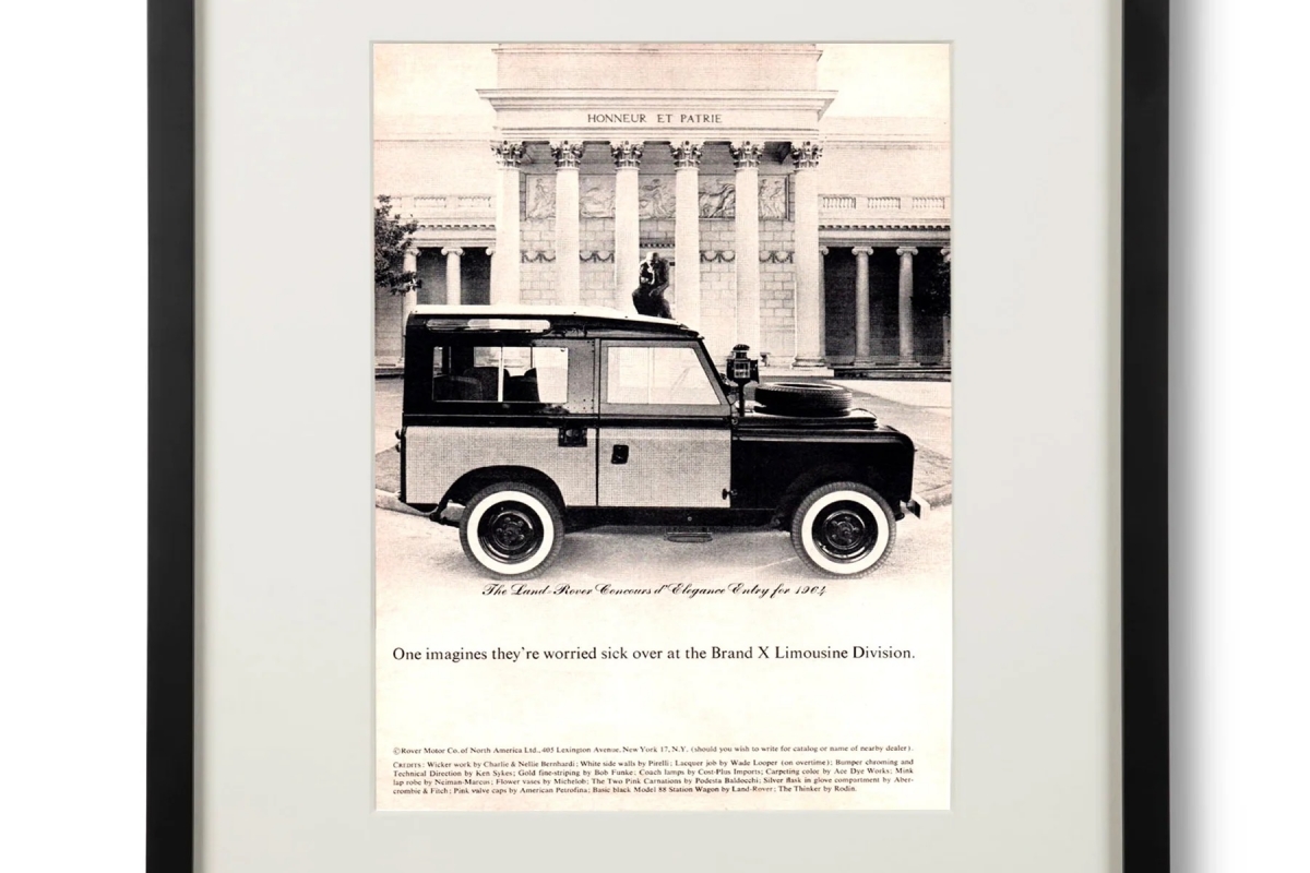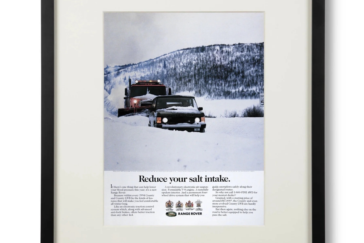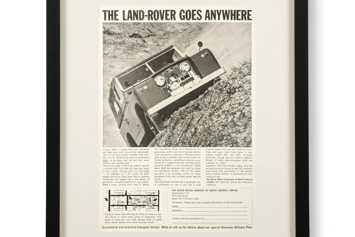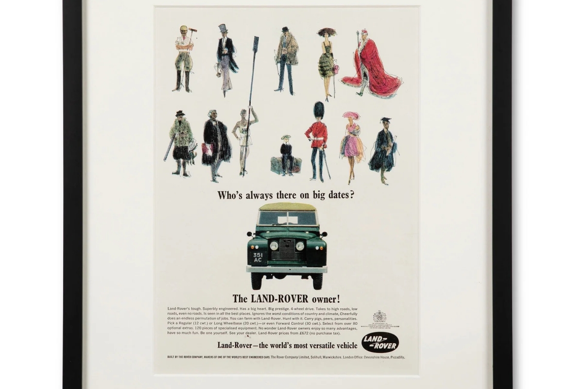 Como são cada vez mais procuradas pelos coleccionadores, a empresa Sir Jack’s decidiu reunir as publicidades mais cativantes e vendê-las com uma moldura, prontas a pendurar na parede. Actualmente são dez as publicidades da Land Rover disponíveis para compra, mas este número irá certamente aumentar.