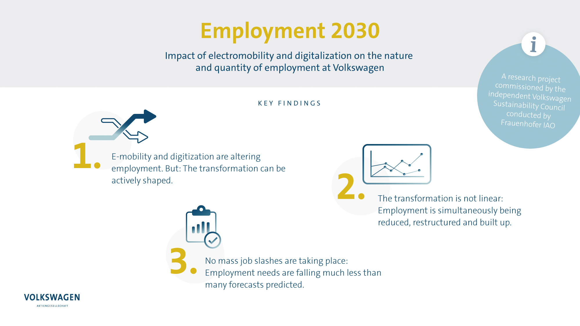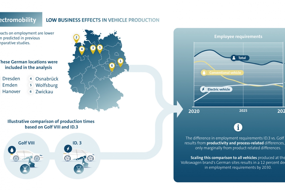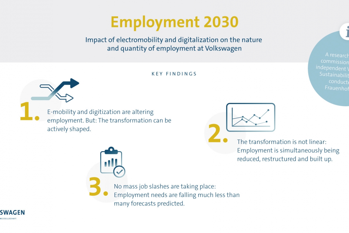 Para tentar compreender a correlação entre os postos de trabalho (os que se perdem e os que se irão ganhar) e o aumento da popularidade dos veículos elétricos, a Volkswagen encomendou um estudo ao Instituto Fraunhofer em Estugarda.