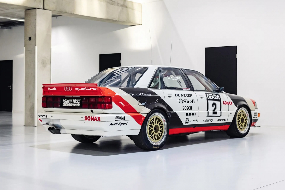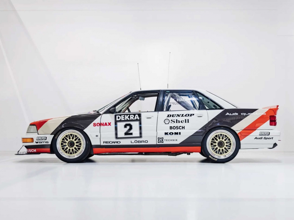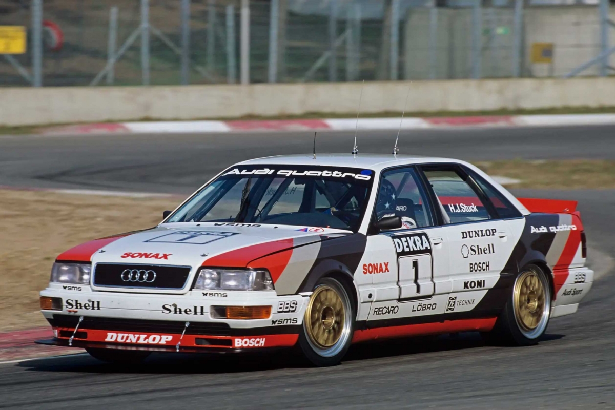 Foi com este modelo e com a tecnologia Quattro que a Audi decidiu apostar no DTM, seguindo os regulamentos de Grupo A, vencendo o campeonato de 1990 e 1991, com Hans-Joachim Stuck e Frank Biela, respectivamente. Em 1992 os Audi V8 sofreram uma alteração no motor, nomeadamente no desenho da cambota, fazendo com que fosse completamente diferente da utilizada nos automóveis de estrada, com a organização do DTM a não permitir esta alteração, fazendo a marca de Ingolstadt abandonar a competição.