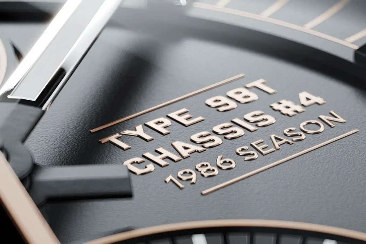 O relógio, tal como o monolugar, apresenta a mítica pintura preta e dourada JPS (John Player Special) e… não é barato.