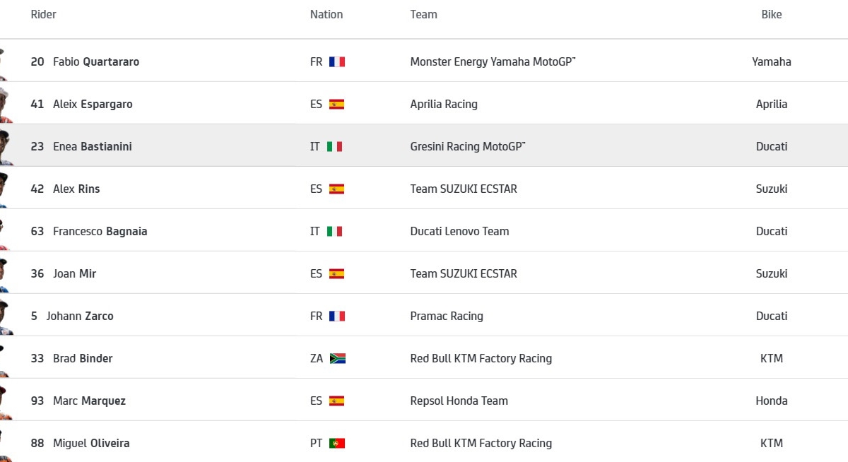 Ainda uma nota especial para a “dança das cadeiras”: ao que consta, Quartaro vai mesmo continuar na Yamaha e Oliveira na KTM…