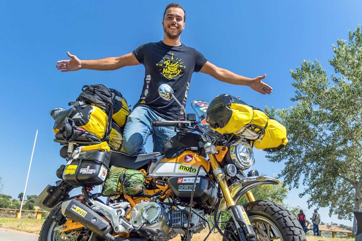 André Sousa, natural de Oliveira de Azeméis está, prestes a chegar ao ponto de partida: Avis, bem no coração do Alto Alentejo, depois de uma maratona que demorou 1000 dias! A partida da pitoresca vila alentejana aconteceu em 20 de julho de 2020 e vai terminar agora no próximo dia 8 de abril, sábado de Aleluia! O próprio nome da aventura já diz muito: Ride That Monkey, numa clara alusão à pequena e simpática Honda Monkey 125!