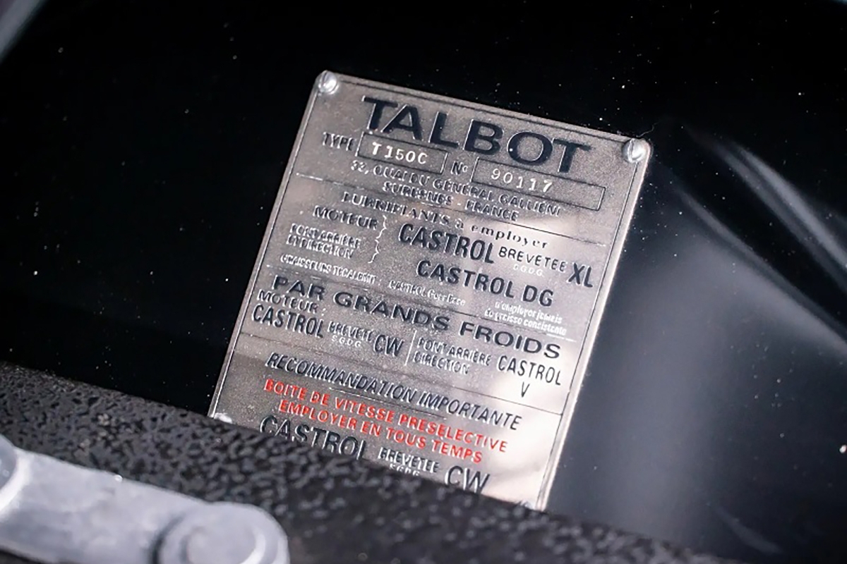 O Talbot-Lago T150-C SS de 1938 presente neste artigo, tem o chassis número #90117 e pensa-se que foi o penúltimo exemplar produzido e o único que foi adquirido para competir, encomendado por Philippe Régnier de Massa, com algumas alterações para ter uma melhor performance nas pistas, como luzes adicionais e um velocímetro que conta até os 250km/h, banco do condutor mais desportivo, reforços estruturais no compartimento do motor, um tanque de combustível de maior capacidade e o bocal de enchimento do mesmo no exterior. Além disso, é o único com diferentes medidas, pois é cerca de 50mm mais baixo e 106mm mais comprido que todos os outros exemplares. Tem ainda janelas traseiras com abertura e tecto de abrir para melhorar a ventilação interior.