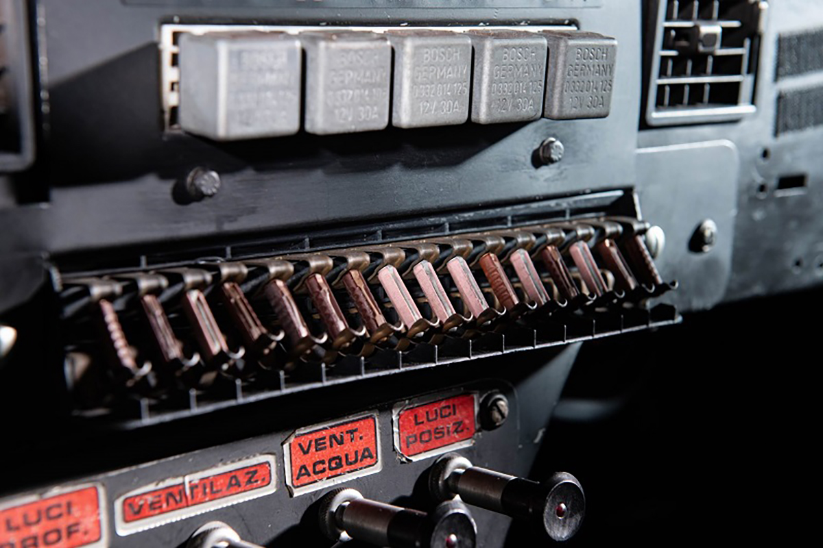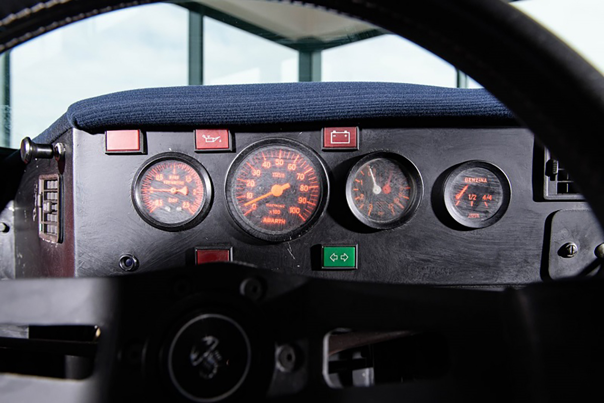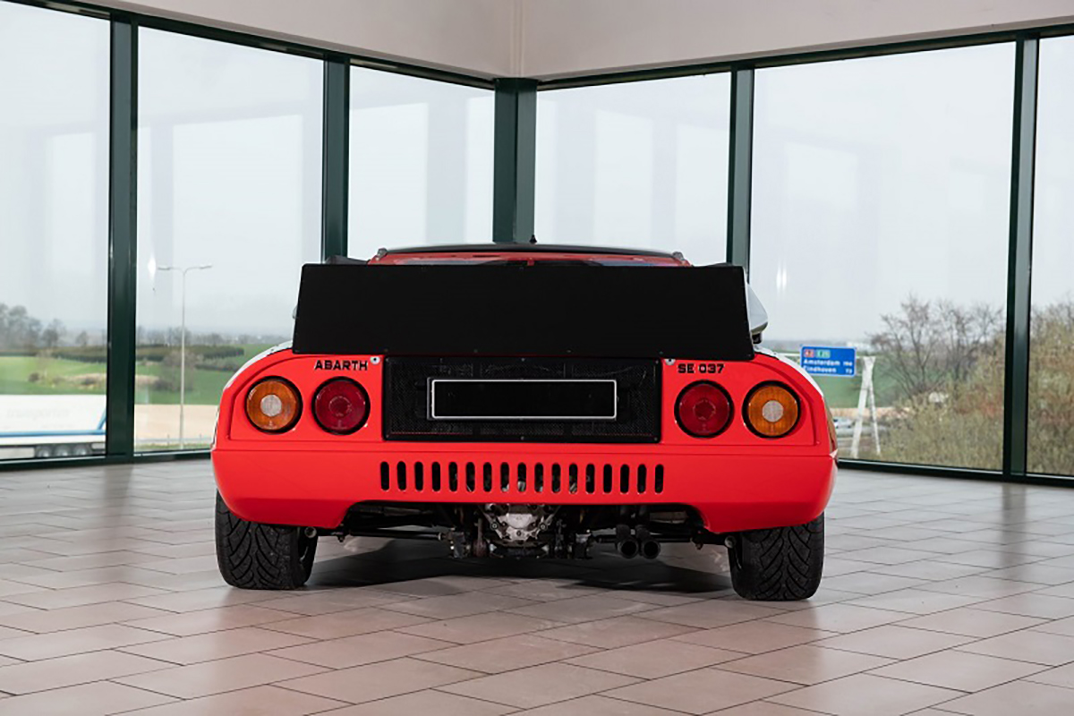 Este é um verdadeiro automóvel de testes, com bastantes folgas entre os painéis e, no interior, tem tudo exposto, desde fusíveis, vários botões, a buracos para a aplicação de instrumentos de avaliação. Ao contrário do chassis 005 que foi mostrado ao público já com o desenho do 037 e com as cores da Martini, o chassis 001 manteve sempre o desenho original da Abarth, assim como a sua designação na traseira e a cor vermelha. No motor é possível ver várias peças da Abarth, como a admissão, e no interior o volante da mesma empresa.