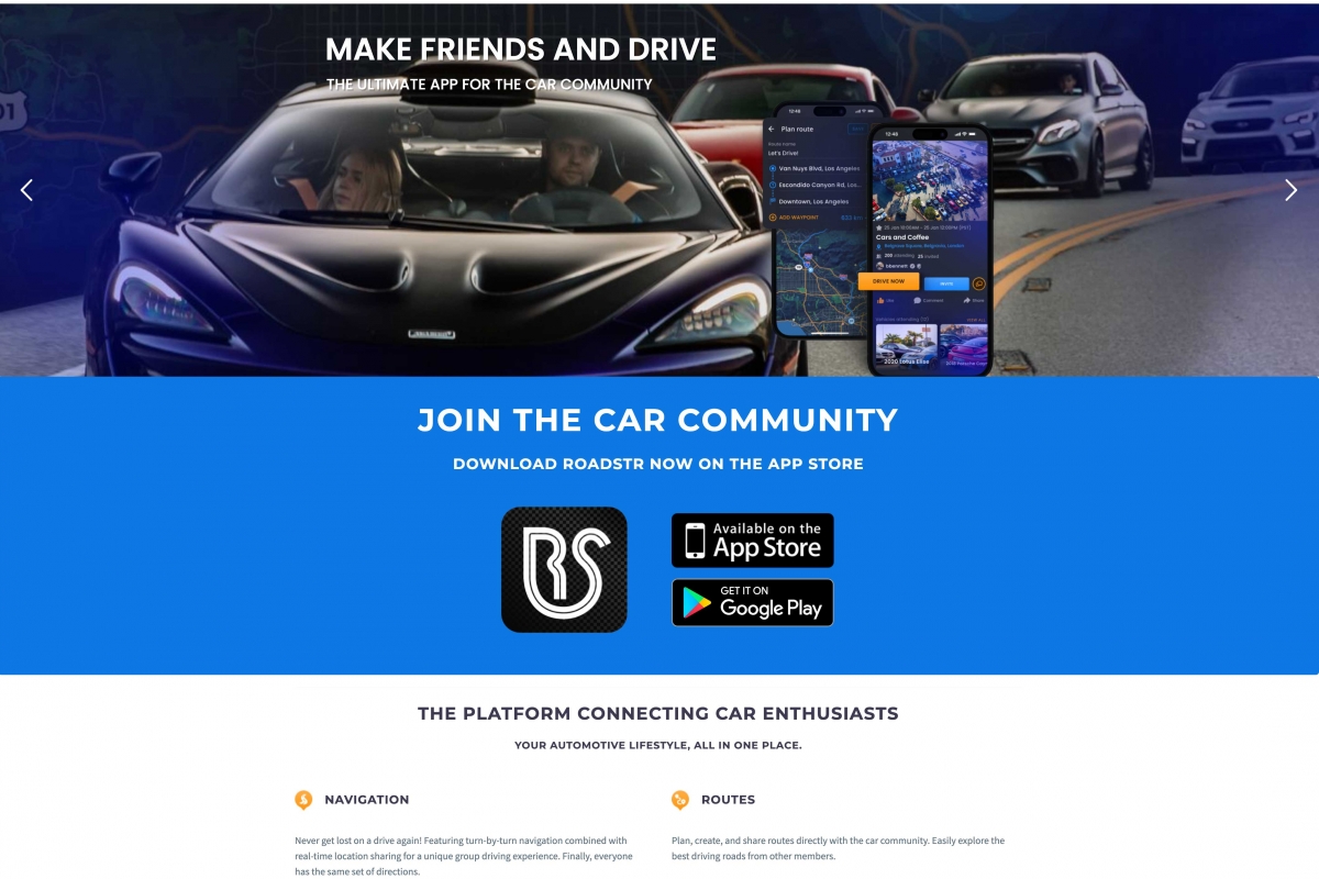 Além de ser uma rede social para entusiastas de automóveis e petrolheads, onde é possível descobrir a sua comunidade local, bem como os mais variados grupos, eventos e encontros, a aplicação RoadStr permite a criação de rotas específicas, uma funcionalidade ideal para passeios e encontros de automóvel.
