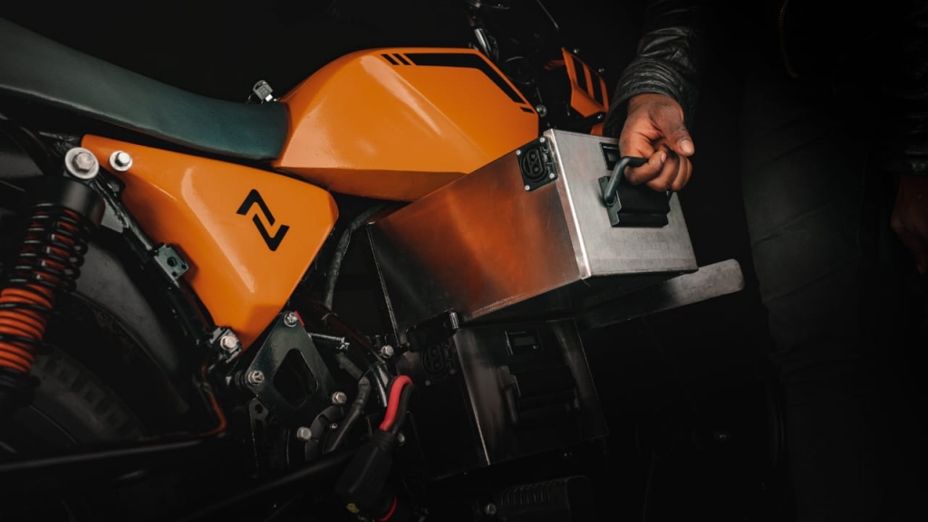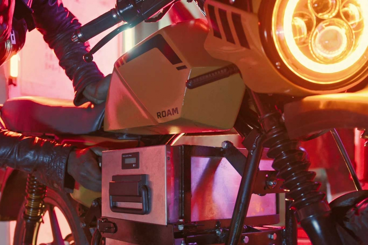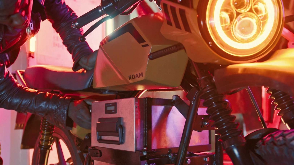 Filip Lövström, sueco que é CEO e cofundador da Roam Air, explica que a moto africana foi pensada para diversas possibilidades de uso comercial, usando o compartimento onde estaria o depósito de combustível convencional para arrumar duas baterias, para uma autonomia conjunta a rondar os 180 km.