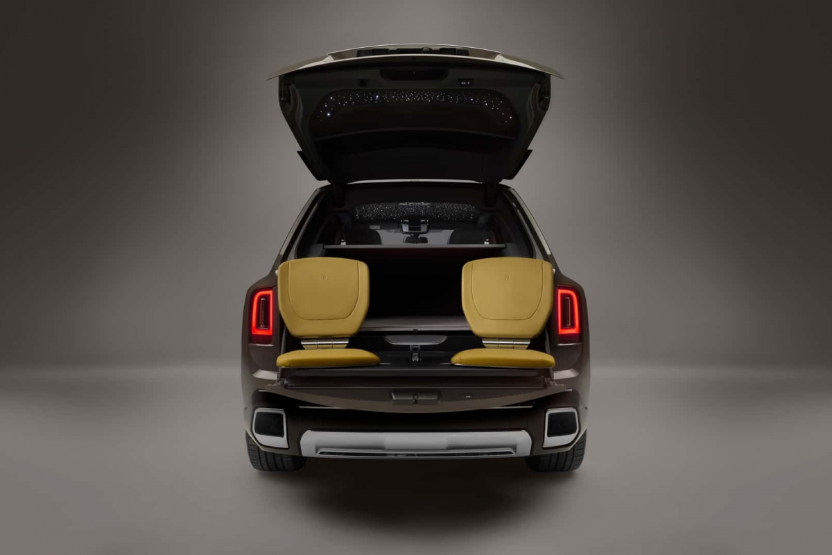 Também é possível obter o Cullinan como um veículo de sete lugares, optando pelos bancos traseiros individuais instalados no compartimento de carga. Estes só podem ser utilizados quando o SUV de luxo está parado e ladeiam uma pequena mesa para champanhe, caviar ou o que os ricos preferirem.
