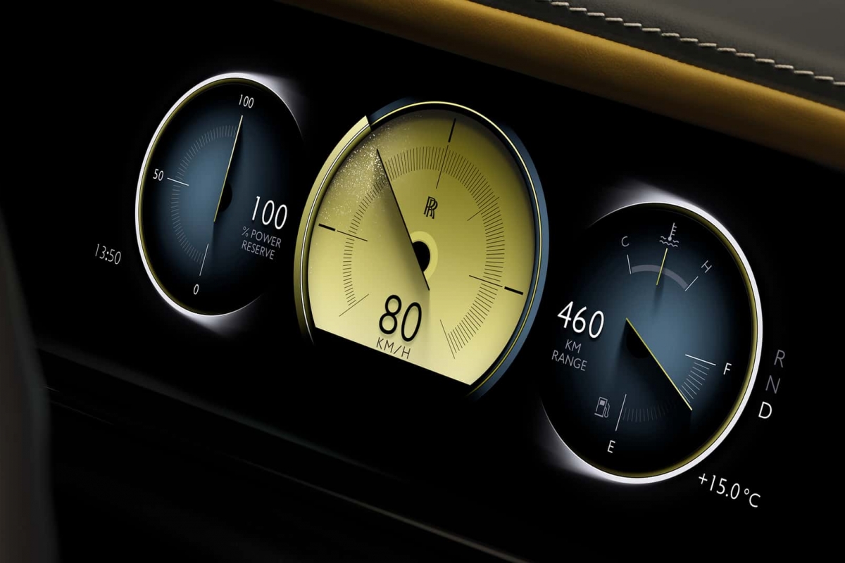 A disposição do interior não mudou em comparação com o Cullinan pré-facelift. No entanto, por baixo do relógio analógico está agora o Spirit of Ecstasy, para que o motorista saiba que não está a conduzir um BMW X7 banal. O acabamento em fibra de carbono do painel de instrumentos do Black Badge tem nada mais, nada menos do que seis camadas de verniz. Cada uma das 23 peças é polida à mão para obter um acabamento espelhado que demora 21 dias a ser concluído.
