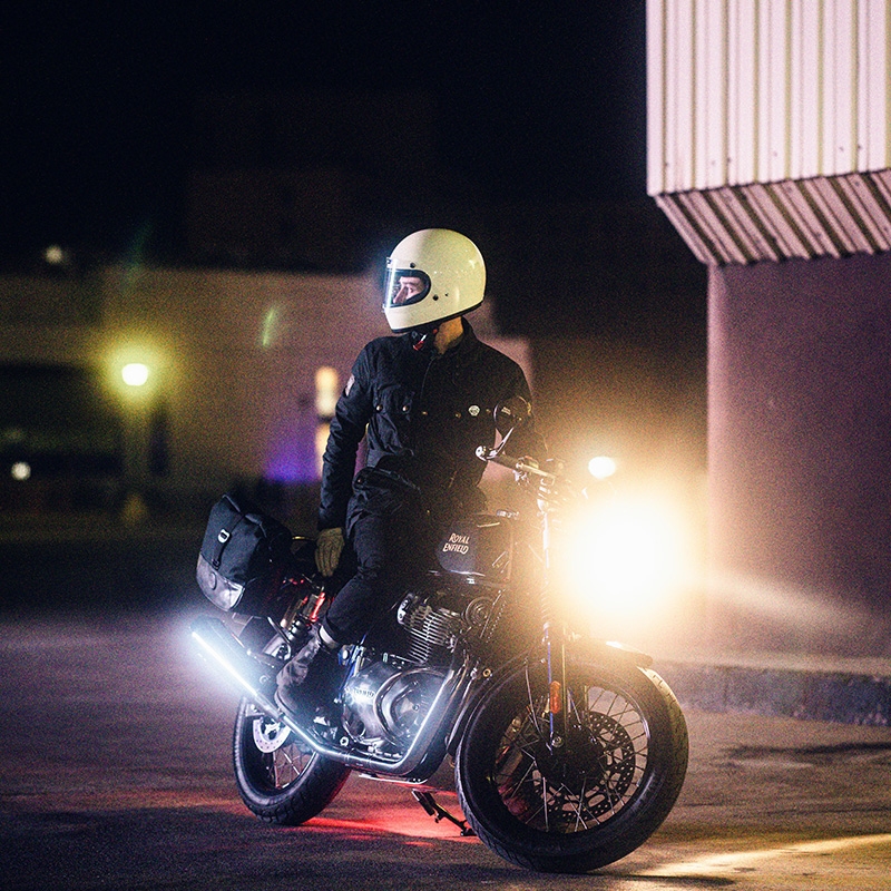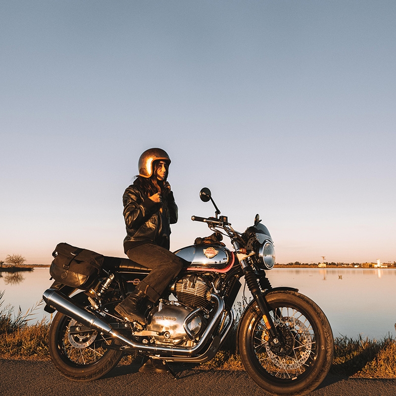 Já a Interceptor 650 Edição Lightning inclui acessórios para explorar estradas pouco percorridas, sendo que o seu extraordinário depósito em forma de lágrima com as tradicionais reentrâncias para os joelhos estriadas e amplo guiador prestam homenagem à Interceptor original que dominou o estilo scrambler urbano da década de 1960 na Califórnia. A posição de condução é confortável e facilita o controlo, tornando-a agradável e prática para percorrer e explorar todos os tipos de terreno, desde sinuosas estradas costeiras até à selva urbana, para sair da cidade em boa companhia ou passear junto ao mar em grande estilo. A Edição Lightning inclui: alforges flexíveis amovíveis, assento touring, proteções de motor compactas, proteção de cárter em alumínio, para-brisas alto, espelhos touring e tampão de enchimento de óleo de fabrico CNC.