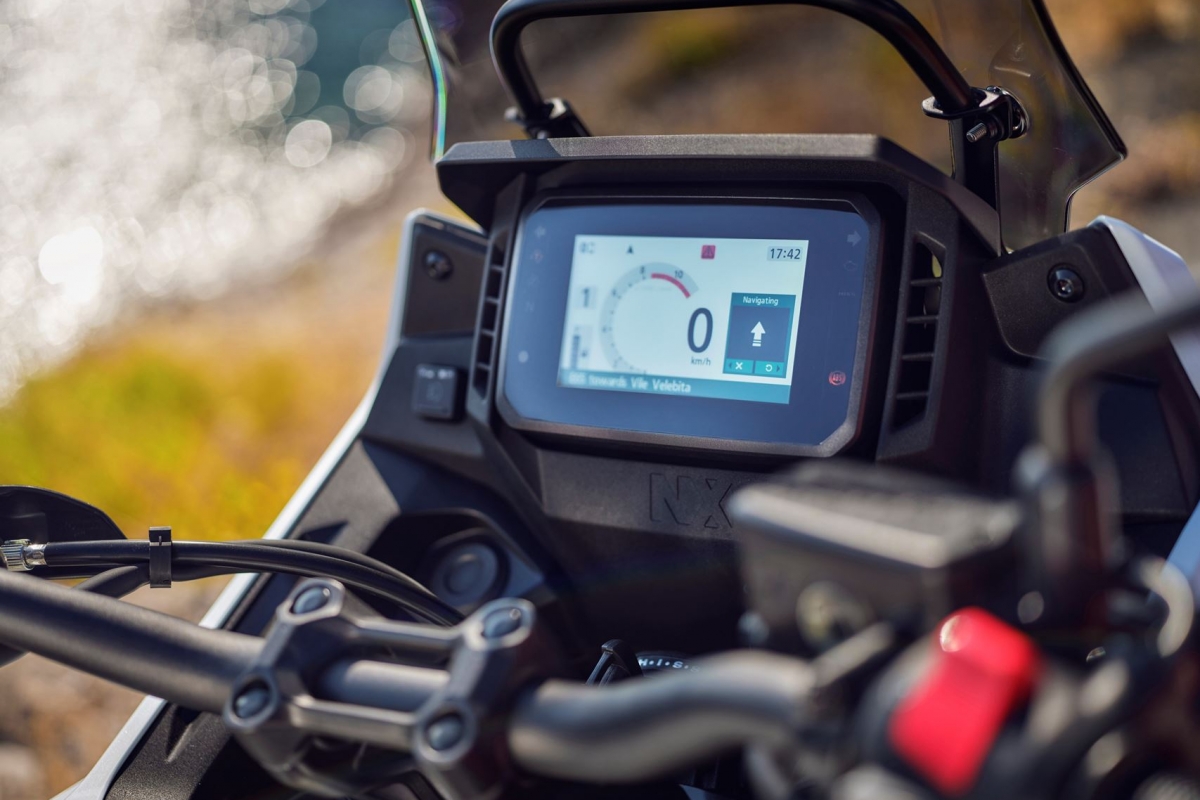 NX significa “New X-over” (Nova Crossover), que é exatamente o que a nova NX500 é. Divertida numa estrada sinuosa, divertida num trilho off-road e pronta para percorrer distâncias, as suas credenciais versáteis são reforçadas com uma nova e impressionante atualização do seu estilo adventure. As jantes também são mais leves e as afinações da suspensão dianteira e traseira foram atualizadas para melhorar a qualidade de condução.