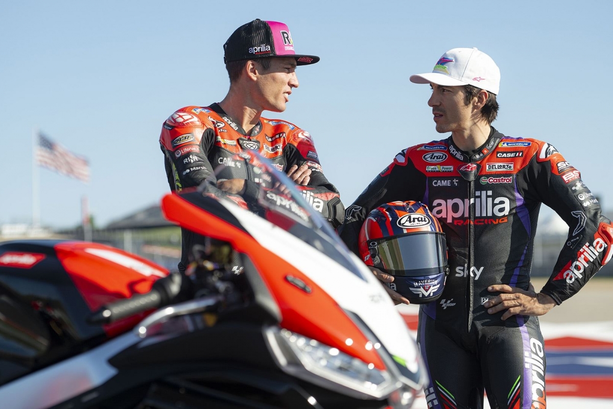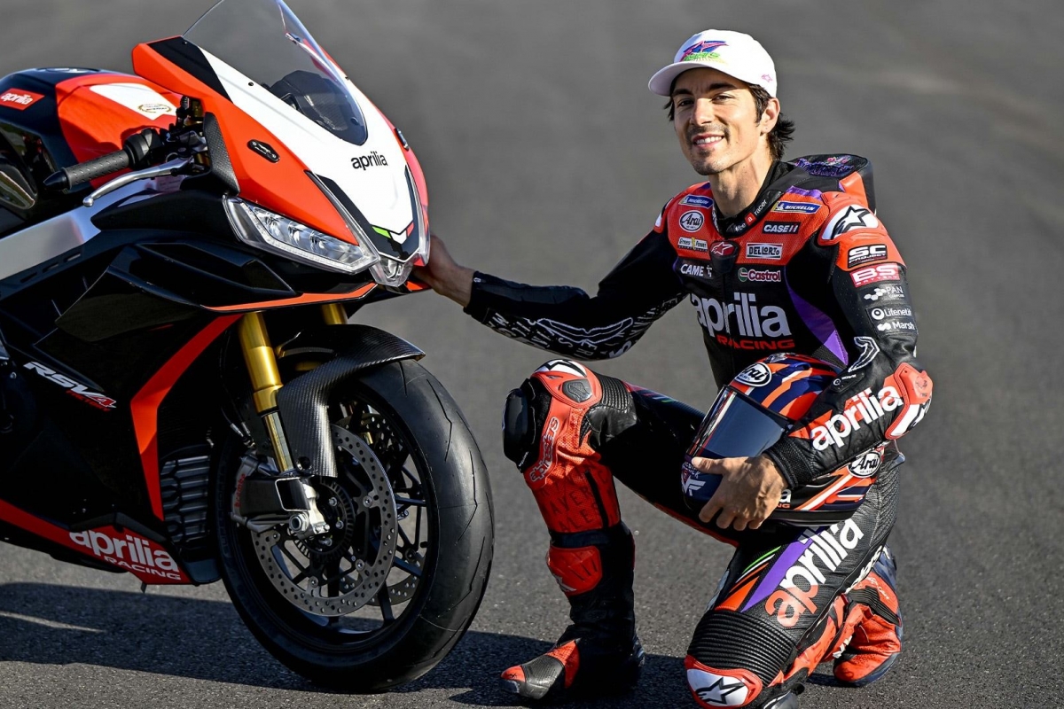 Os pilotos Aprilia Racing, Aleix Espargaró e Maverick Viñales foram os primeiros a receber e apresentar a RSV4 Factory e Tuono V4 Factory nesta versão especial e nostálgica que homenageia Biaggi.