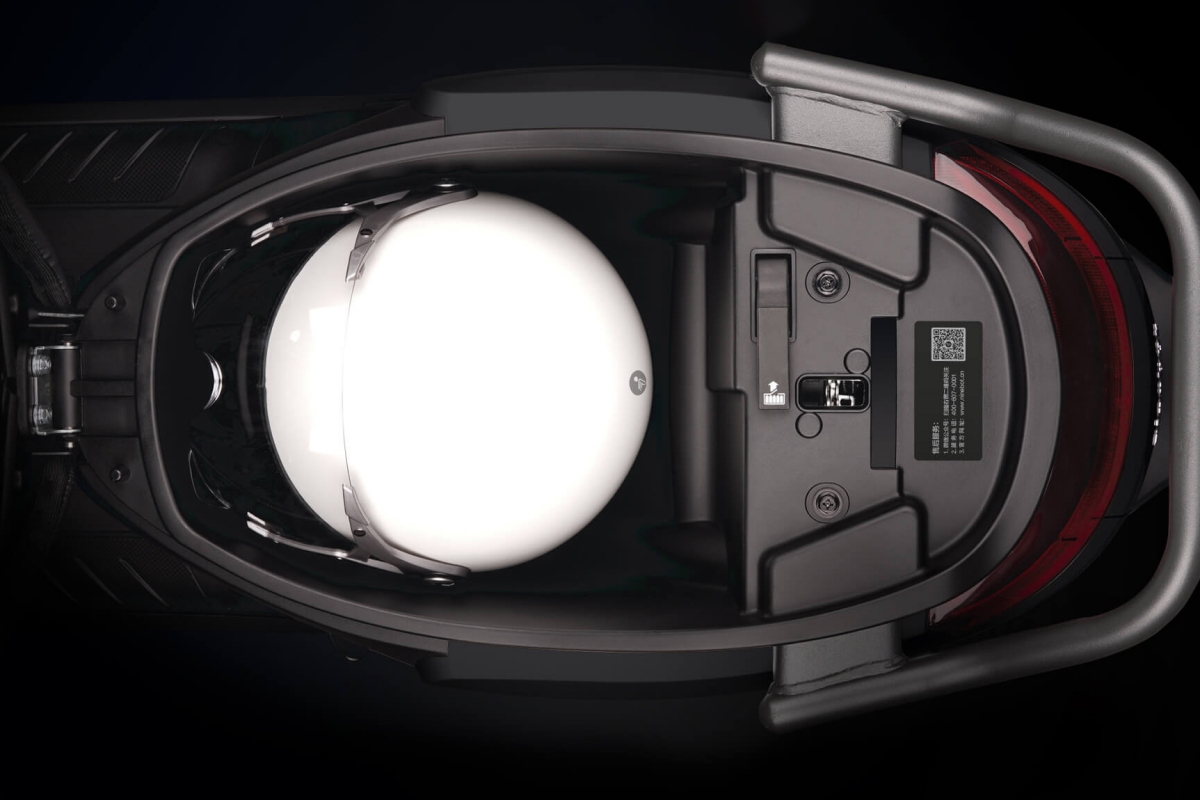 A scooter Segway manteve um amplo espaço sob o banco, com um compartimento de bagagem de 27 litros.