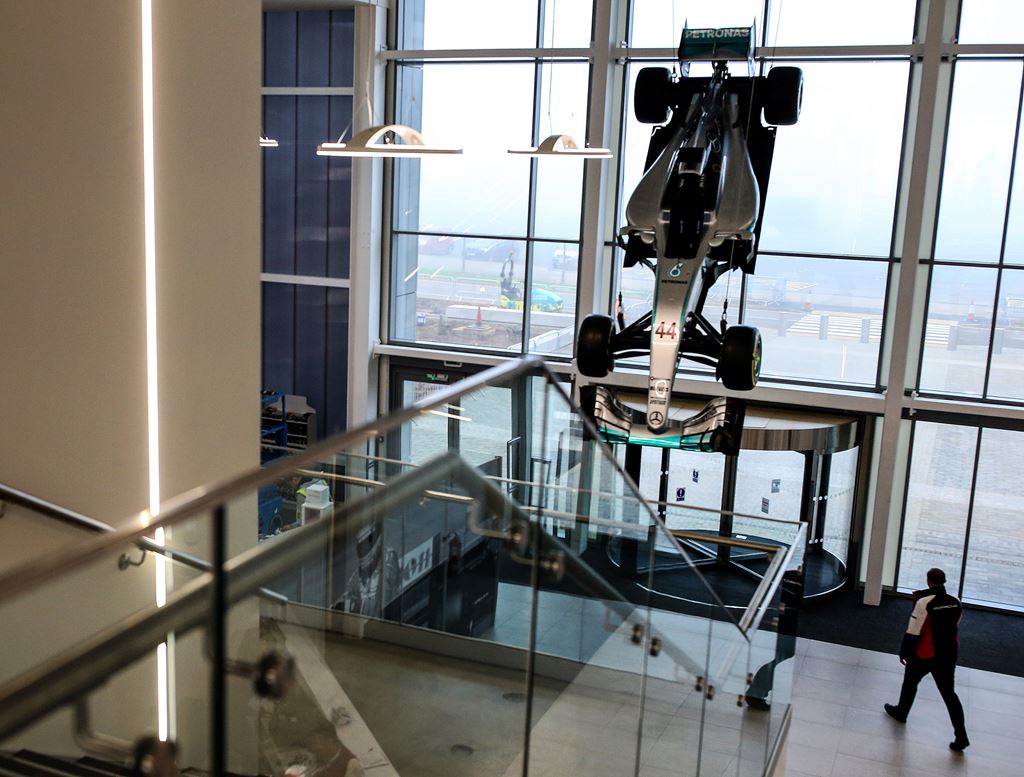 Situado perto do Bridge Corner, é um edifício igual a todos os outros mas destaca-se devido ao jardim situada na parte de trás do edifício. Ao subir os degraus do átrio, encontra-se suspenso um Mercedes-Benz F1 W07 Híbrido de 2016, e nos fins-de-semana de corrida, os automóveis podem ser vistos à distância a travar com força em Brooklands e depois tentativamente acionando e deslizando à volta de Luffield. Uma distracção ideal enquanto os visitantes esperam que as portas se abram.