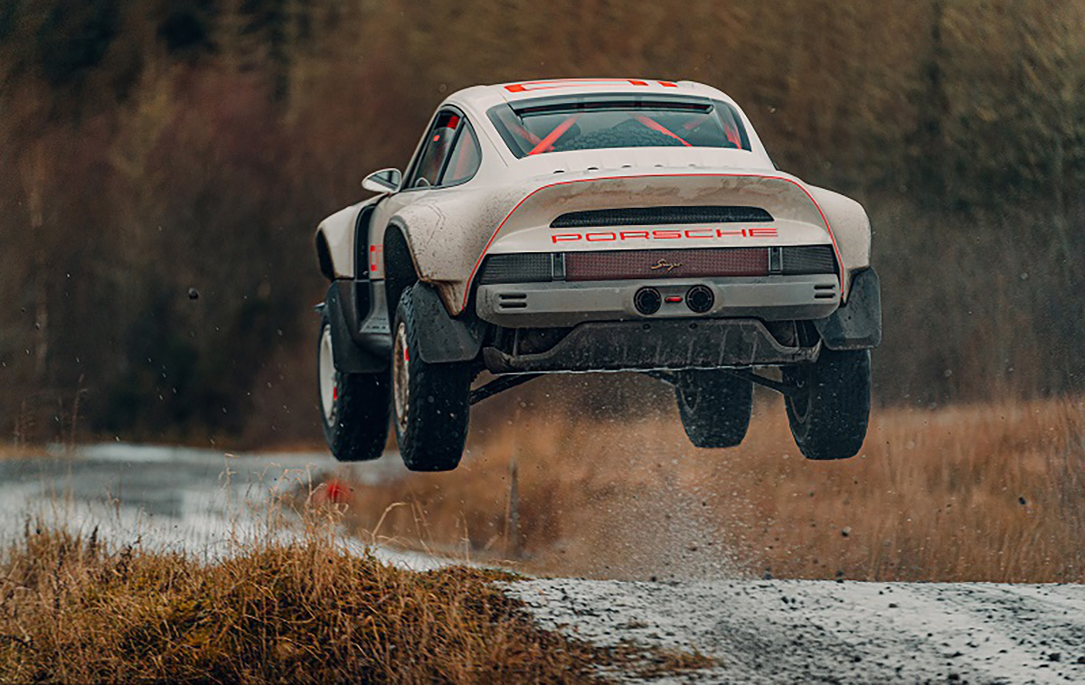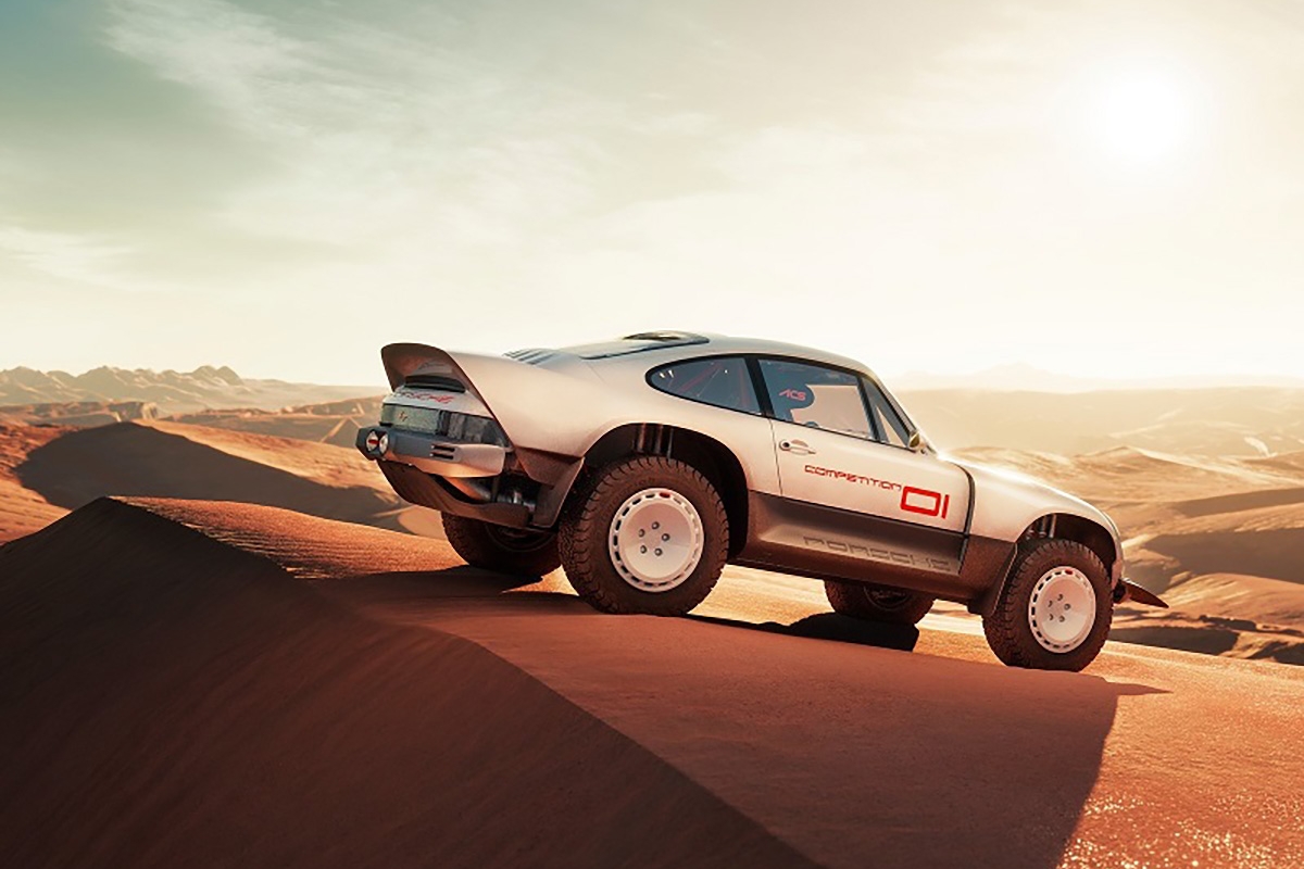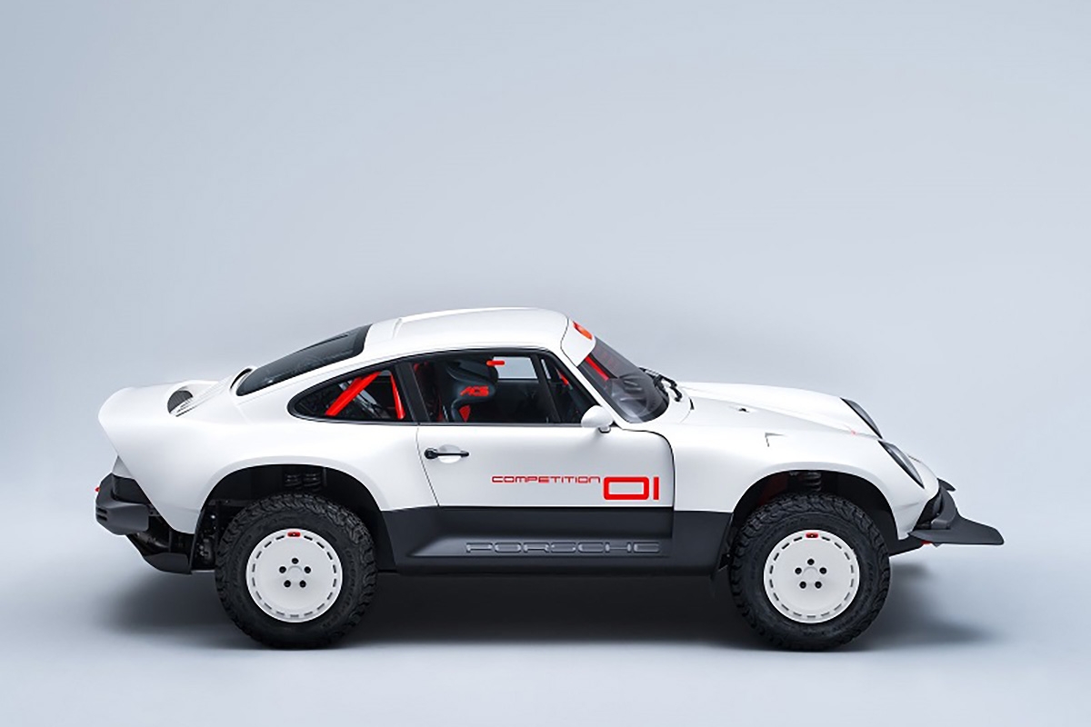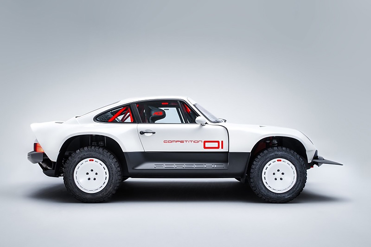 Com base num Porsche 911 da geração 964 de 1990, a Singer inspirou-se nos saudosos Porsche 953 e 959 que competiram no Dakar, elevando a altura ao solo, além de aplicar jantes forjadas de 16” com pneus BF Goodrich K02 de todo-o-terreno e umas generosas protecções laterais com a inscrição Porsche. Na traseira podemos encontrar um spoiler integrado no desenho da carroçaria, algo inspirado no 959. Os painéis da carroçaria são em fibra de carbono e foram desenhados para a sua fácil reparação e substituição. Tudo foi elaborado com a colaboração do britânico Richard Tuthill, especialista em 911 de rali.