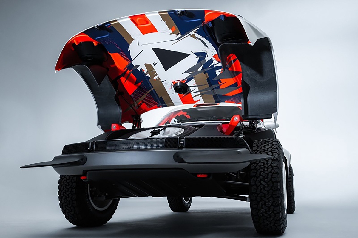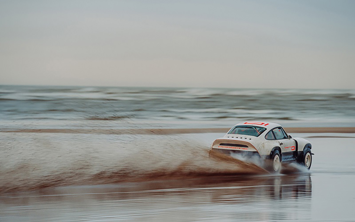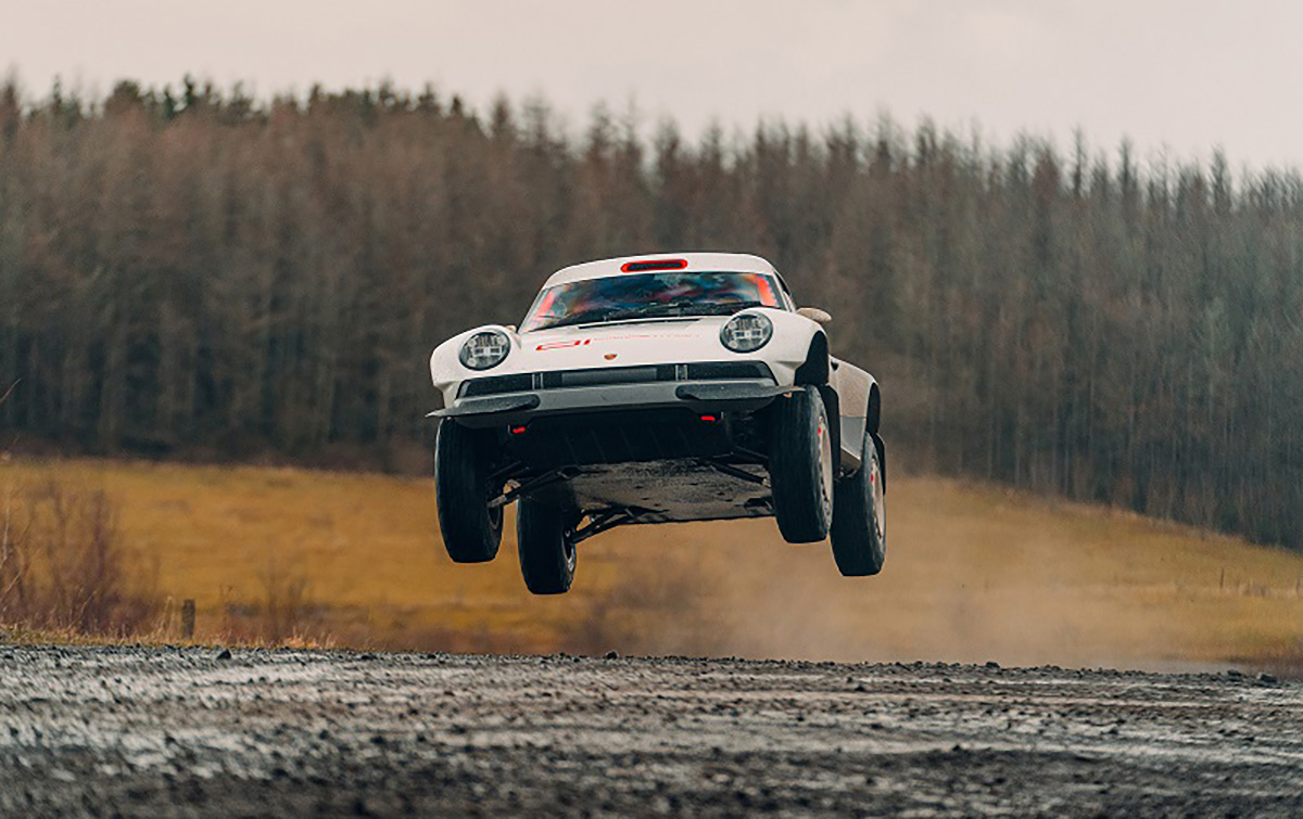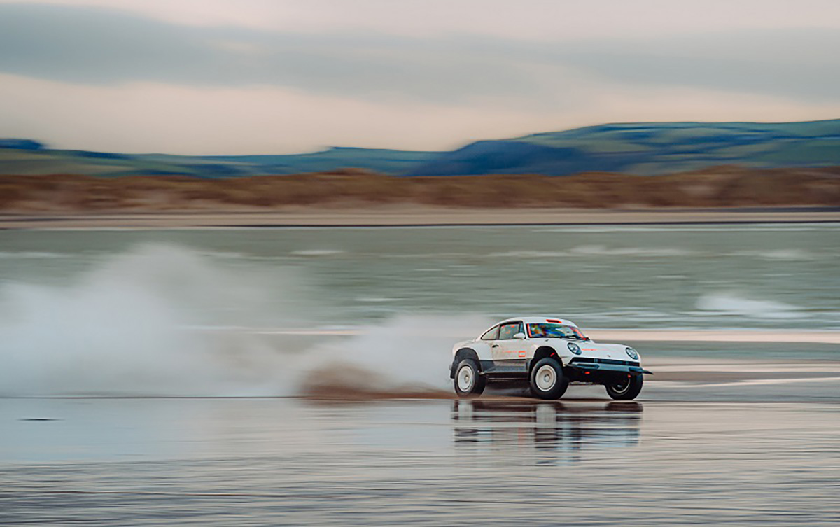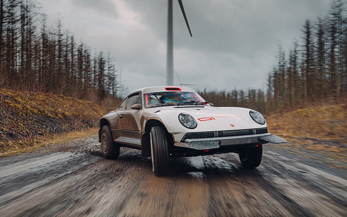 Com base num Porsche 911 da geração 964 de 1990, a Singer inspirou-se nos saudosos Porsche 953 e 959 que competiram no Dakar, elevando a altura ao solo, além de aplicar jantes forjadas de 16” com pneus BF Goodrich K02 de todo-o-terreno e umas generosas protecções laterais com a inscrição Porsche. Na traseira podemos encontrar um spoiler integrado no desenho da carroçaria, algo inspirado no 959. Os painéis da carroçaria são em fibra de carbono e foram desenhados para a sua fácil reparação e substituição. Tudo foi elaborado com a colaboração do britânico Richard Tuthill, especialista em 911 de rali.