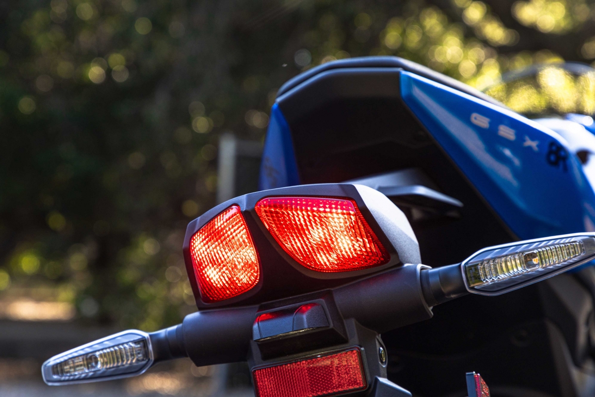 Fazendo parte da família GSX-S, a GSX-8R apresenta, ainda assim, uma imagem desportiva que antecipa um elevado prazer de condução, evidenciado na combinação das suas linhas agressivas e superfícies planas, que lhe conferem um ar elegante, equilibrado e de perfeita proporção.