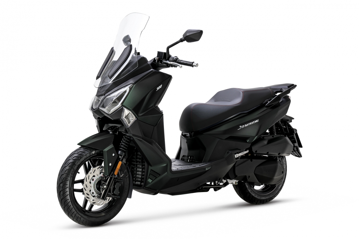 A nova Joyride 300 combina assim agilidade, segurança e conforto. Uma scooter de estrado plano, com design desportivo e linhas estreitas, com visual FULL LED para ser imediatamente reconhecível.