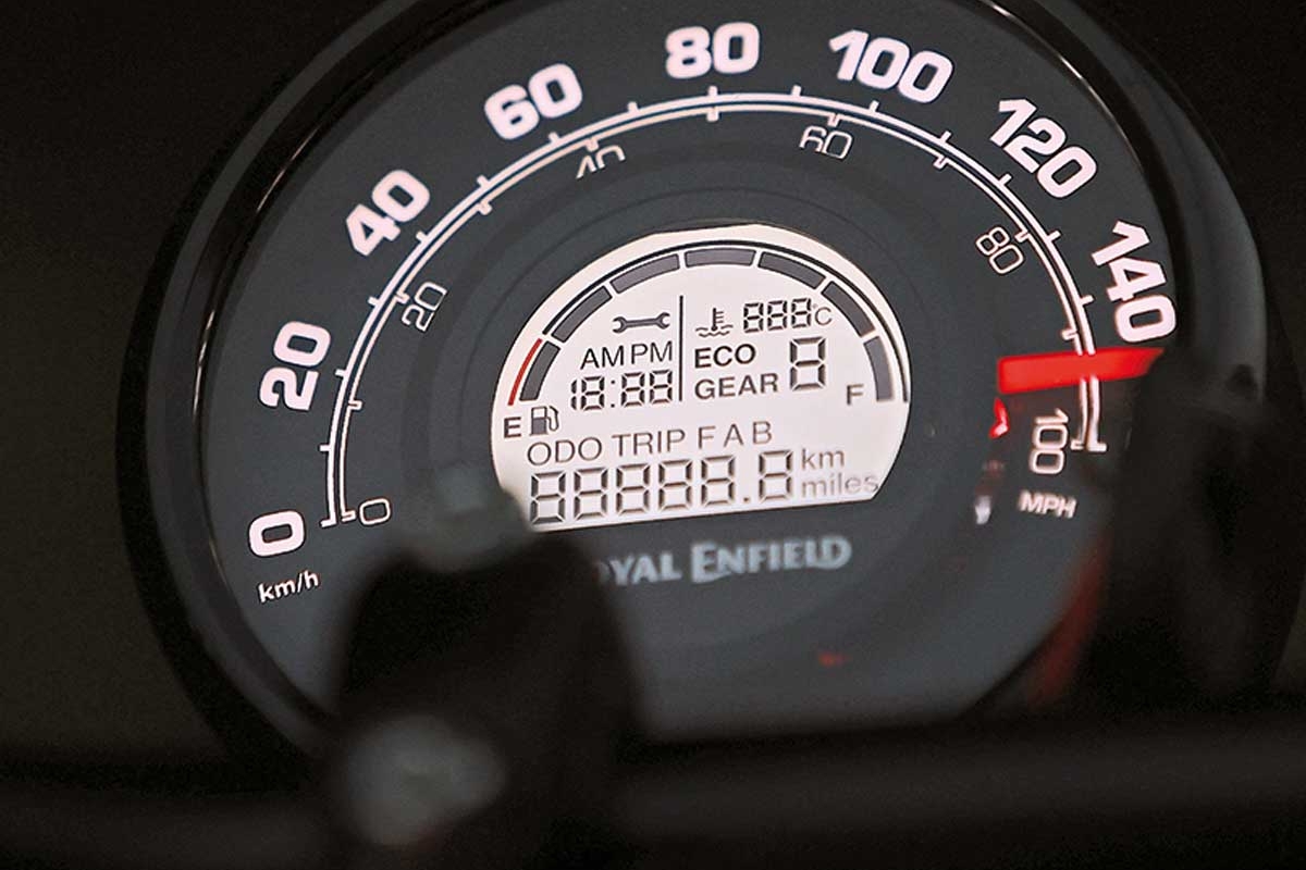 Dá para perceber pelas fotos que estamos perante uma moto muito bonita. Na Royal Enfield acertaram em cheio com os pormenores e acabamentos. Desde a decoração do depósito e o logo a condizer nas tampas laterais, passando por muitos outros pormenores que fazem toda a diferença e acentuam o seu carácter como: ótica e piscas redondos (tal como o painel de instrumentos) com destaque para mostrador analógico sobre o digital, os foles das suspensões, os amortecedores laterais à vista ou os parafusos que fecham as tampas da parte interna do motor, ou por exemplo a ausência de elementos cromados; tudo isso contribui para a aparência vintage e dá vida a um conjunto equilibrado e muito agradável à vista. A respeito da ótica dianteira temos ainda a assinalar que é de halogéneo e não de LED, reforçando a humildade do conceito, assim como a ausência (quase) total de eletrónica, à exceção do sistema de ABS obrigatório por lei e uma tomada de carregamento USB, por baixo da manete da embraiagem.