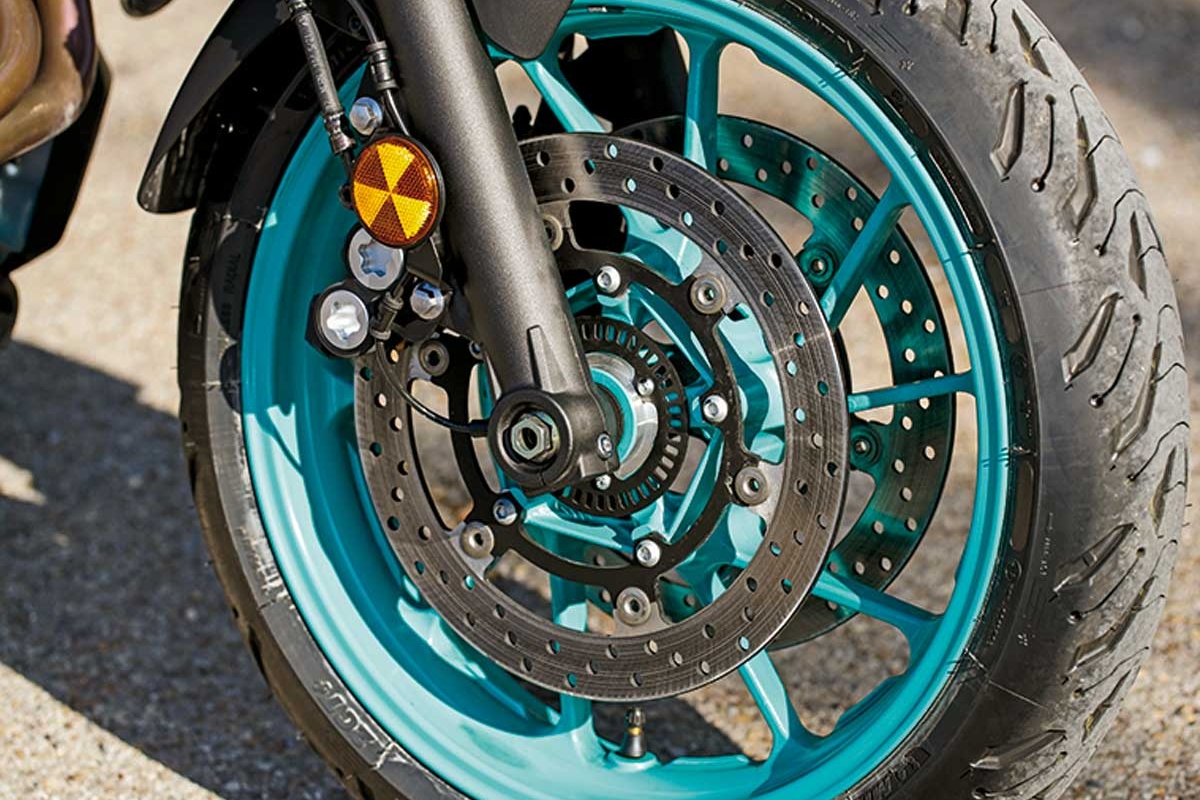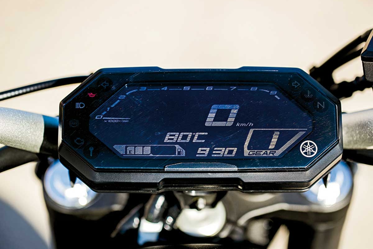 Recordamos que o motor da MT-07 é designado por CrossPlane 2 (CP2), isto é, um bicilíndrico em linha compacto de 689 cc com a particularidade de montar uma cambota ajustada a 270º para nos dar um tato e uma sonoridade semelhante a um V2 (mais caro, complexo e pesado). Na sua última evolução foram melhorados alguns pormenores internos (sobretudo menos fricção), além de uma caixa de velocidades otimizada e um novo sistema de escape. Este bloco, que se estreou na primeira geração do modelo em 2014, também foi aproveitado em quatro outras irmãs de catálogo (XSR700, Tracer 7, Ténéré 700 e R7), uma autêntica “jóia” para a Yamaha. Mas há mais argumentos neste modelo, como as suspensões Kayaba, travões de disco dianteiros de 298 mm e pinças monobloco Advics de excelente tacto. O amortecedor traseiro (com 9 posições de pré-carga), não deu sinais de fadiga em nenhum momento durante este teste. Está instalado horizontalmente, não tem bielas e está acoplado diretamente ao motor para conseguir maior rigidez. O quadro usa tubos de aço (sub-quadro assimétrico), deixando o assento a 805 mm do solo, algo elevado “a priori”, compensado pelo estreito arco de pernas. O guiador cresceu 3 centímetros de largura para conseguir uma postura 100% natural. De série vem calçada com pneus Michelin Road 5. Ao nível do utilizador é de agradecer a instrumentação digital de fácil leitura e com tanta informação.
