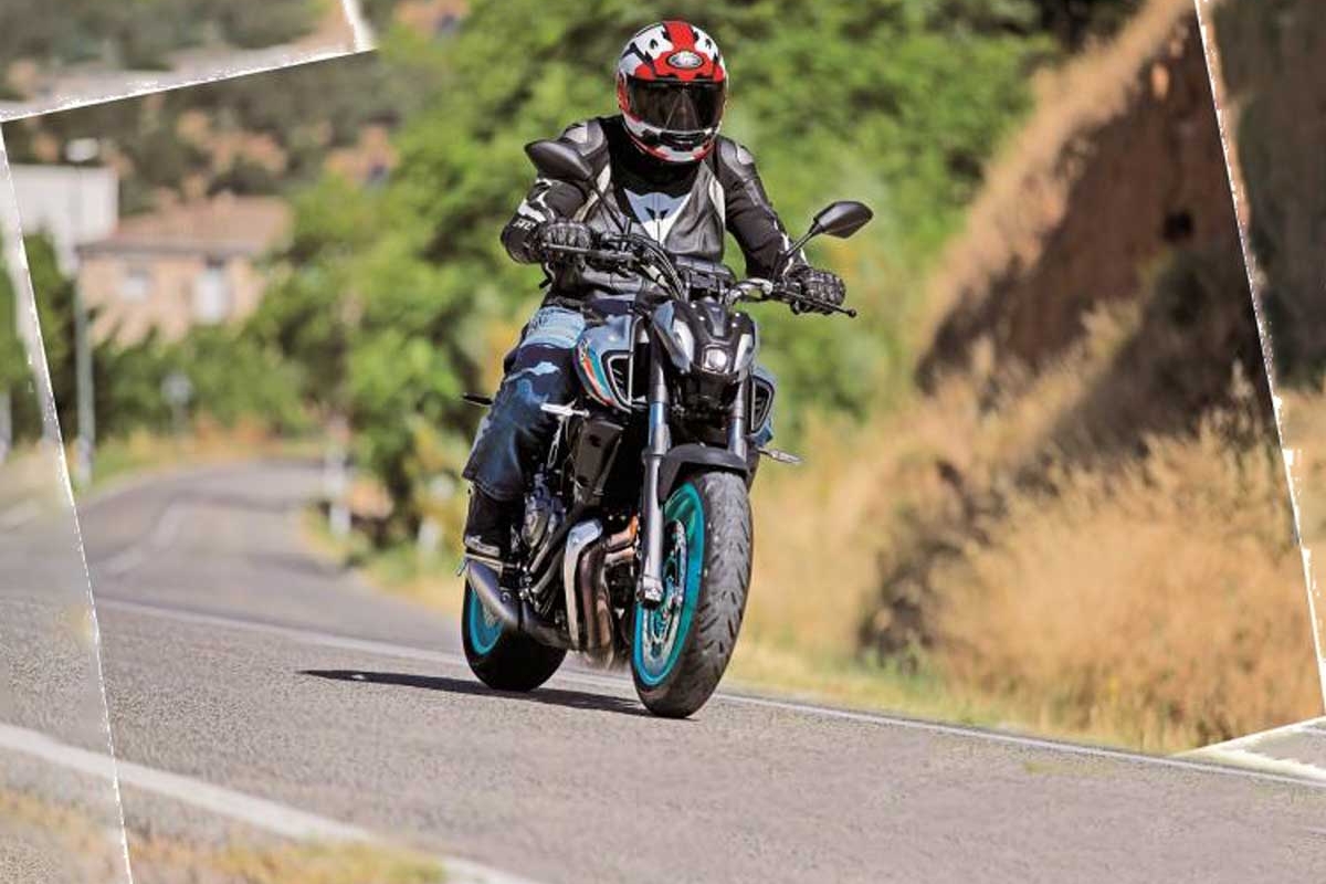 A Yamaha MT-07 mantém a sua agilidade, mas é estável e mantém a trajetória sem perder a compostura em qualquer situação. Quanto ao motor, é muito divertido poder contar com um tato tão refinado, acompanhado por uma caixa perfeita (de tato e escalonamento). De facto, em estradas de curvas de segunda ou terceira mudanças, como aquelas em que fizemos bastantes quilómetros, a moto aceitou uma condução tranquila, com uma mudança acima, mas também quando jogamos ao ataque, jogando bem com os regimes médios. Numa condução rápida também nos surpreendeu pela competência: acelerando em segunda a fundo, a roda dianteira teimava em descolar do chão, mas com tranquilidade (longe de uma MT-10, por exemplo), deixando mudar de direção mesmo no ar, para preparar a curva seguinte.