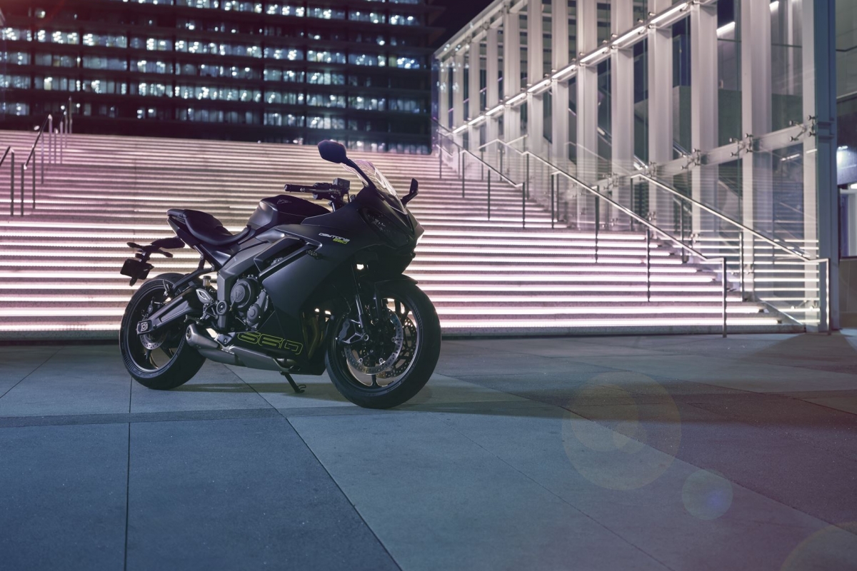 O modelo Daytona 660 traz uma potência significativamente maior, com 17% mais força e 9% mais binário do que a sua predecessora, a Trident. O escape totalmente renovado oferece uma sonoridade desportiva distintiva, complementando a sua postura agressiva e linhas limpas.