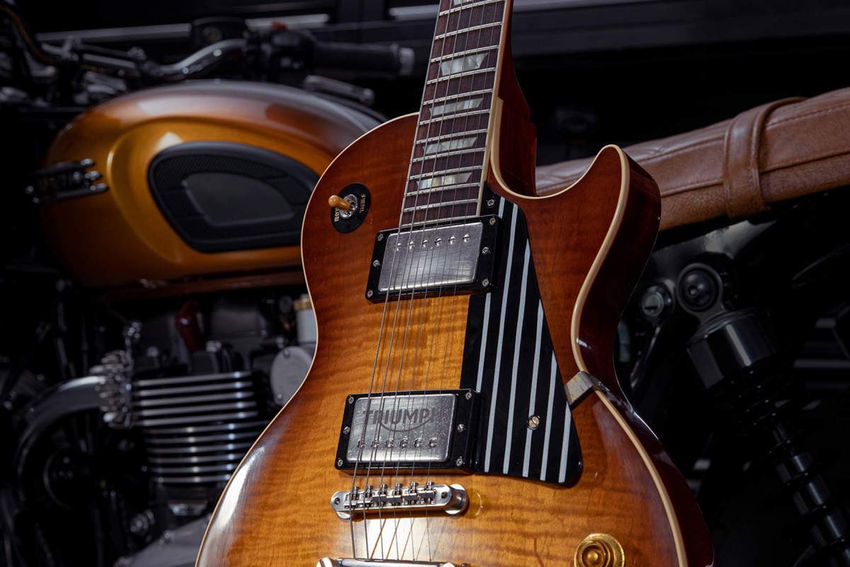 A Les Paul Standard de 1959 é o derradeiro clássico da Gibson, mais do que apenas um tributo, um clone autêntico e preciso. A par disso, o derradeiro ícone da moto clássica, a lendária Bonneville T120 de 1959, tem a génese da superbike britânica original. Líder na categoria, combina esse carácter e estilo intemporais, com capacidade e desempenho modernos.