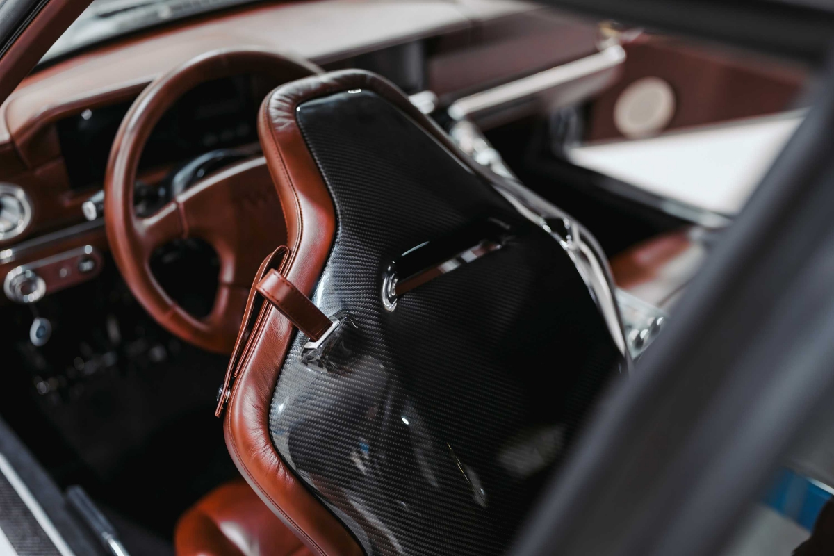 O interior foi completamente redesenhado e actualizado, contando com baquets da Sabelt e pedaleira da Tilton.