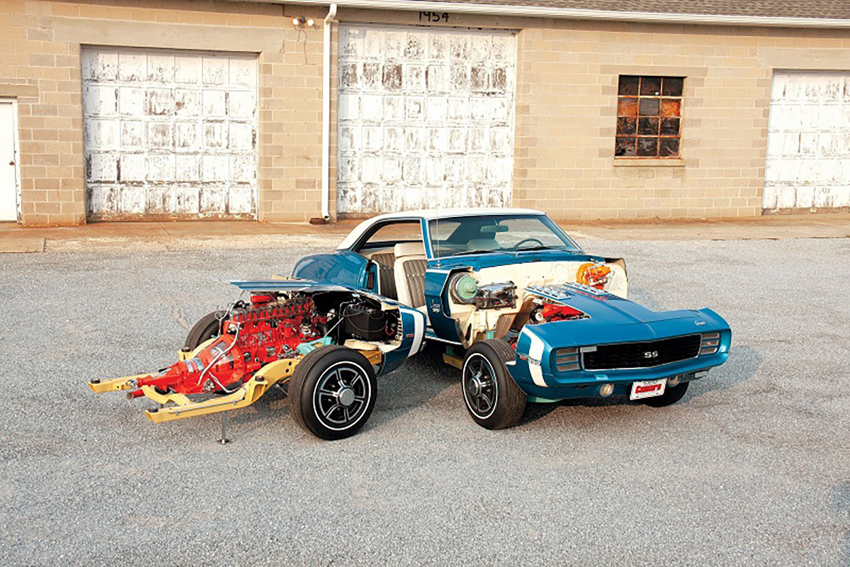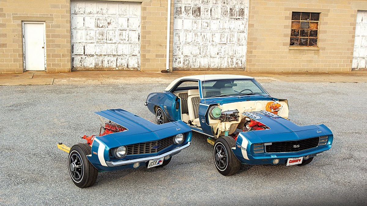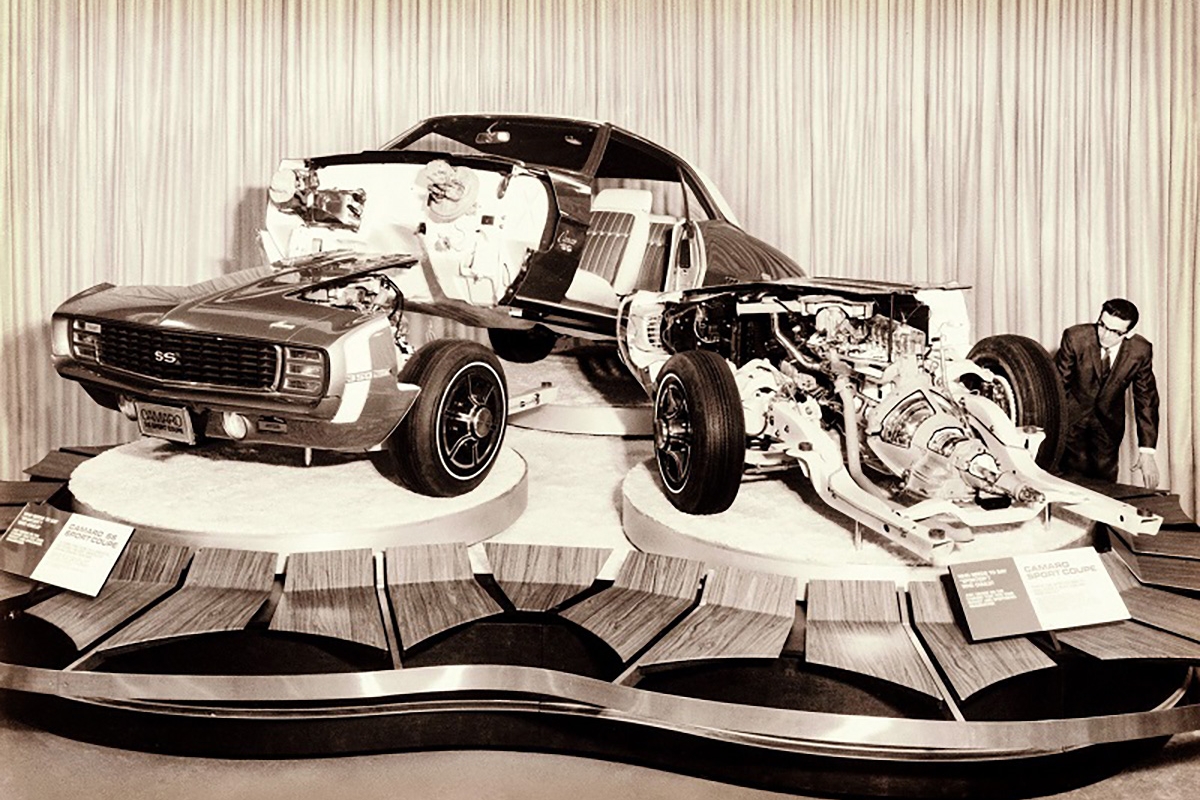 Presente neste artigo está um Chevrolet Camaro RS/SS de 1969 que foi cortado para mostrar as suas zonas interiores, assim como outra frente do mesmo ano, também cortada, equipada com o motor básico de seis cilindros em linha.