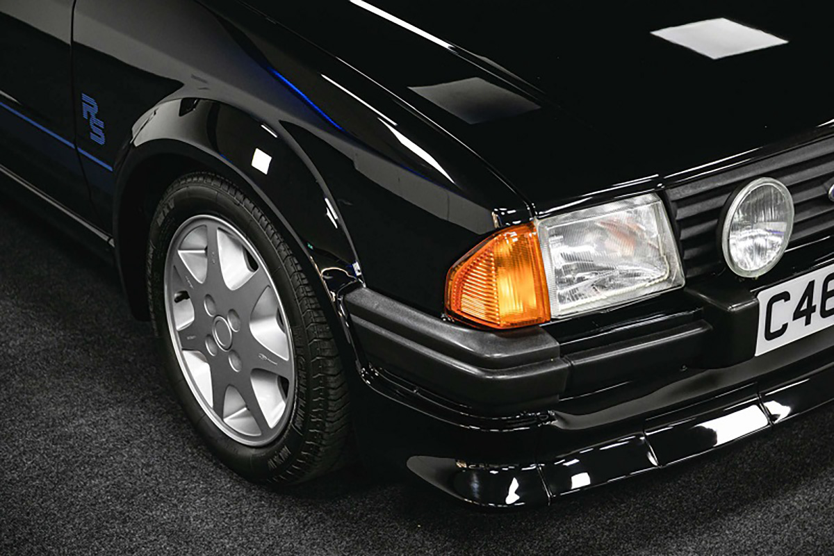 Praticamente todos os Escort RS Turbo S1 foram pintados na cor Diamond White, com algumas excepções, como os três exemplares muitos especiais pintados de Jet Black destinados à família Real, sendo o mais especial o exemplar presente neste artigo.