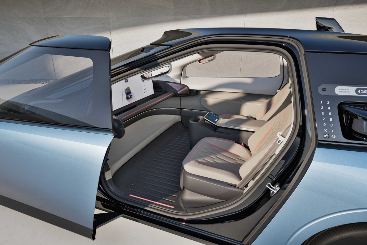 O veículo terá dois lugares e um conceito de interior que redefine o espaço automóvel. O design visa oferecer mais espaço do que qualquer veículo atual, com portas deslizantes e um ambiente interior que proporciona conforto e entretenimento, através de um ecrã ultralargo de 43 polegadas e 17 colunas de som.