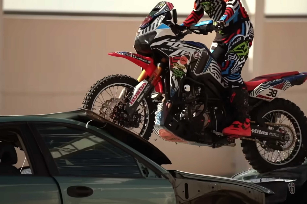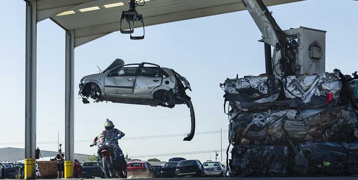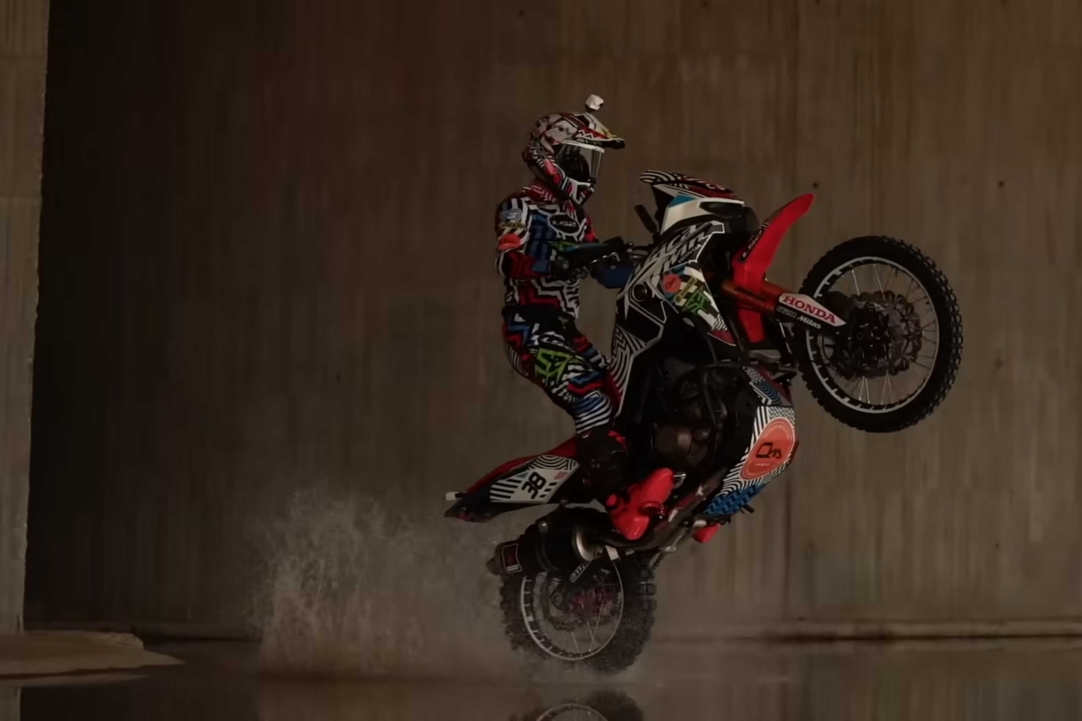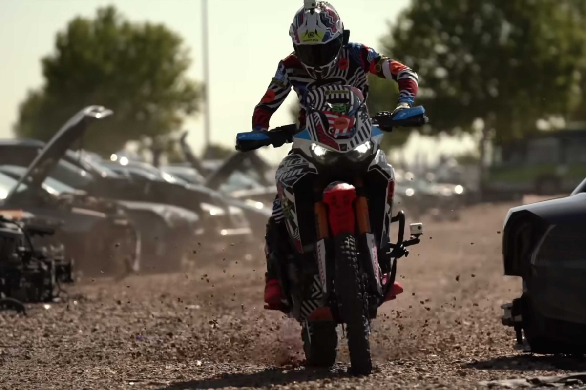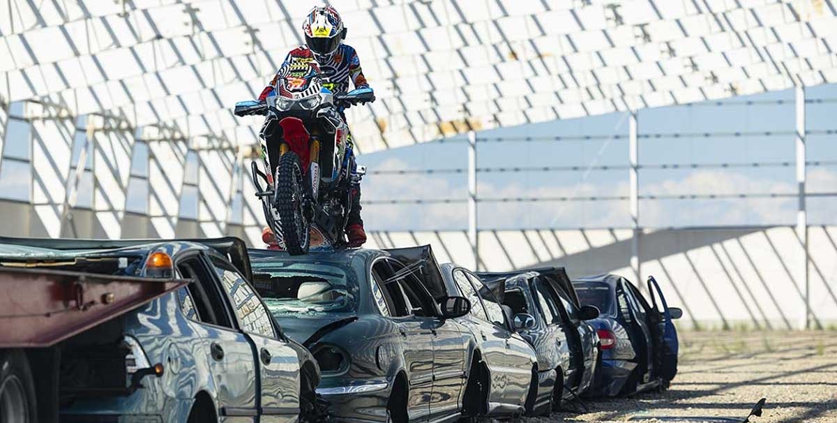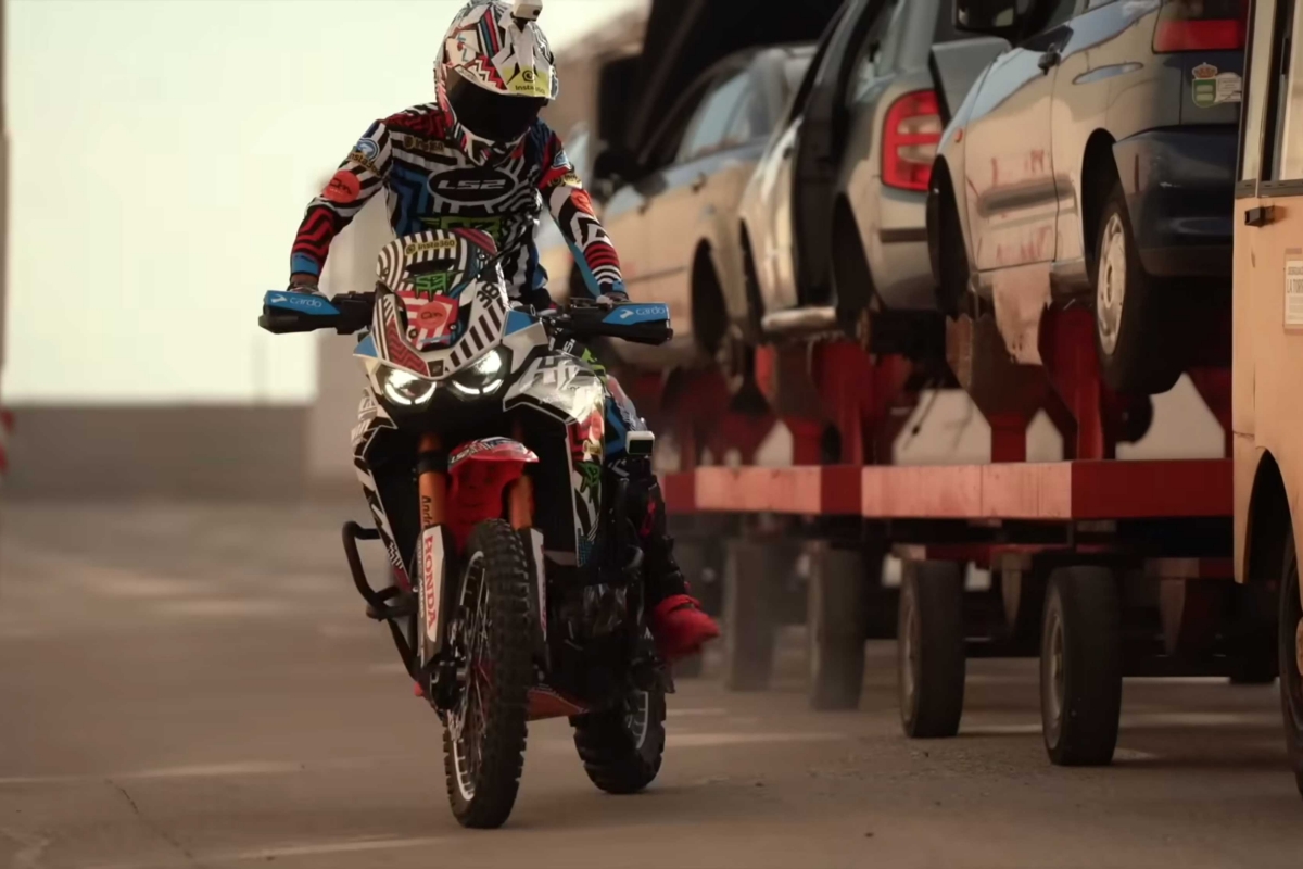O piloto espanhol Kirian Mirabet e a sua Honda Africa Twin protagonizam a segunda parte da sua espetacular Gymkhana, filmada no cenário ao estilo de James Bond das instalações de Desguaces La Torre.