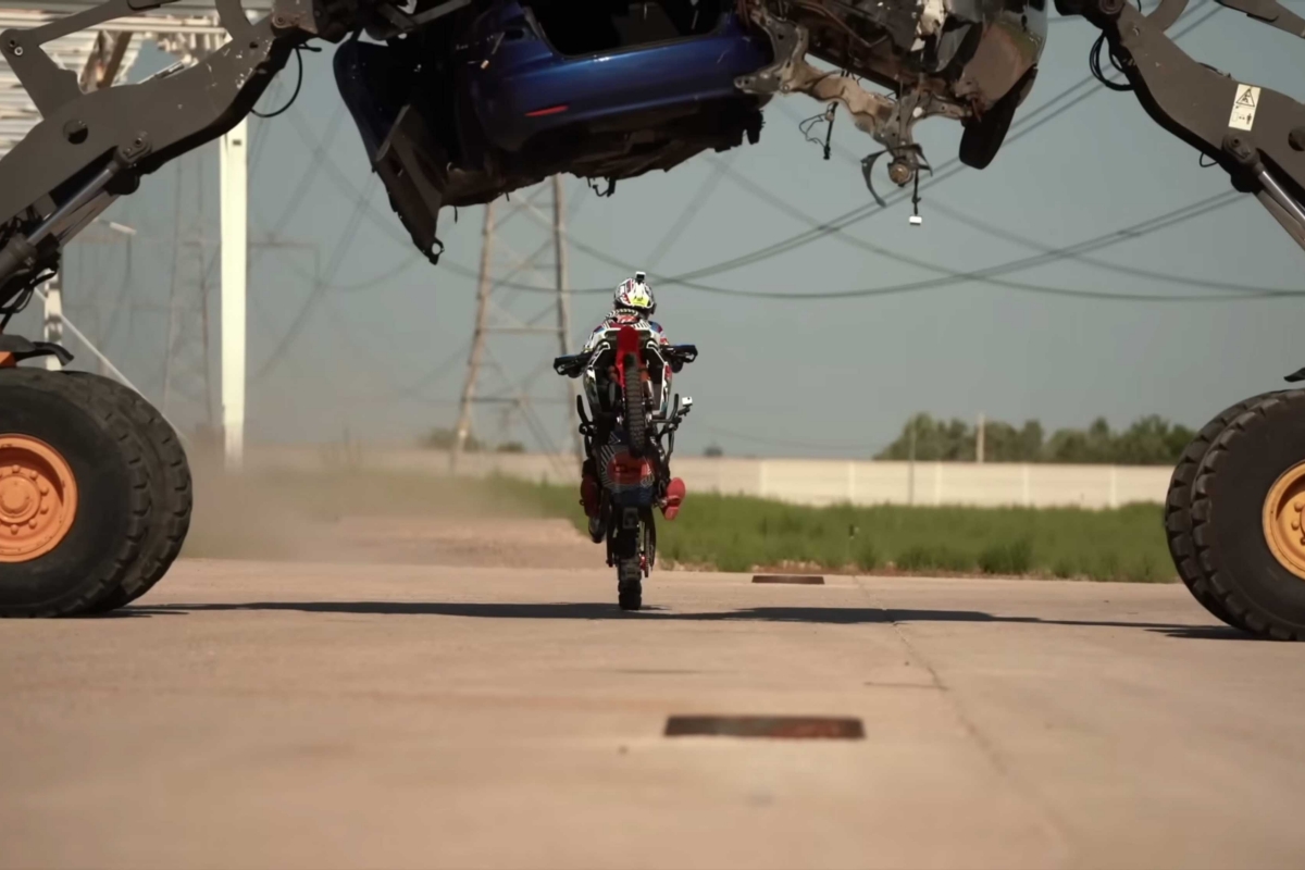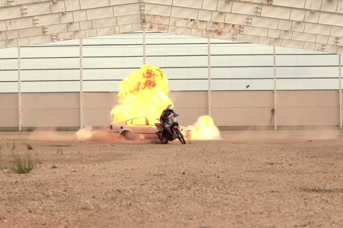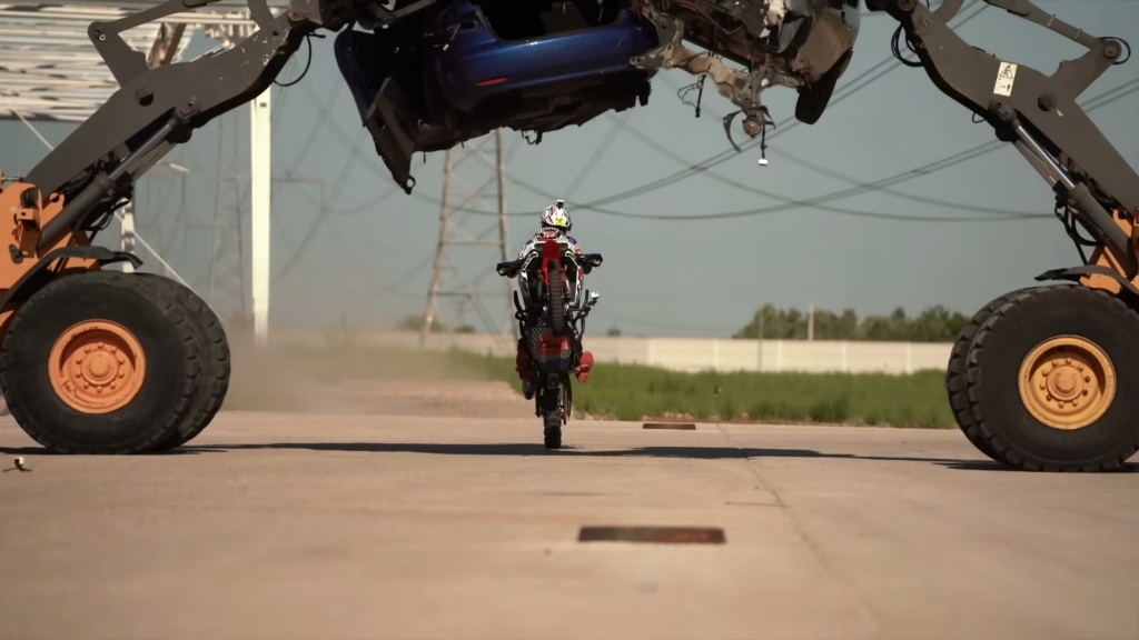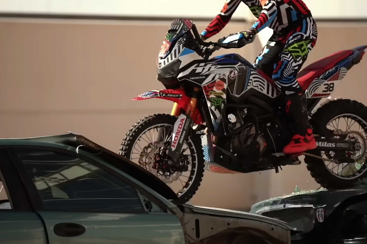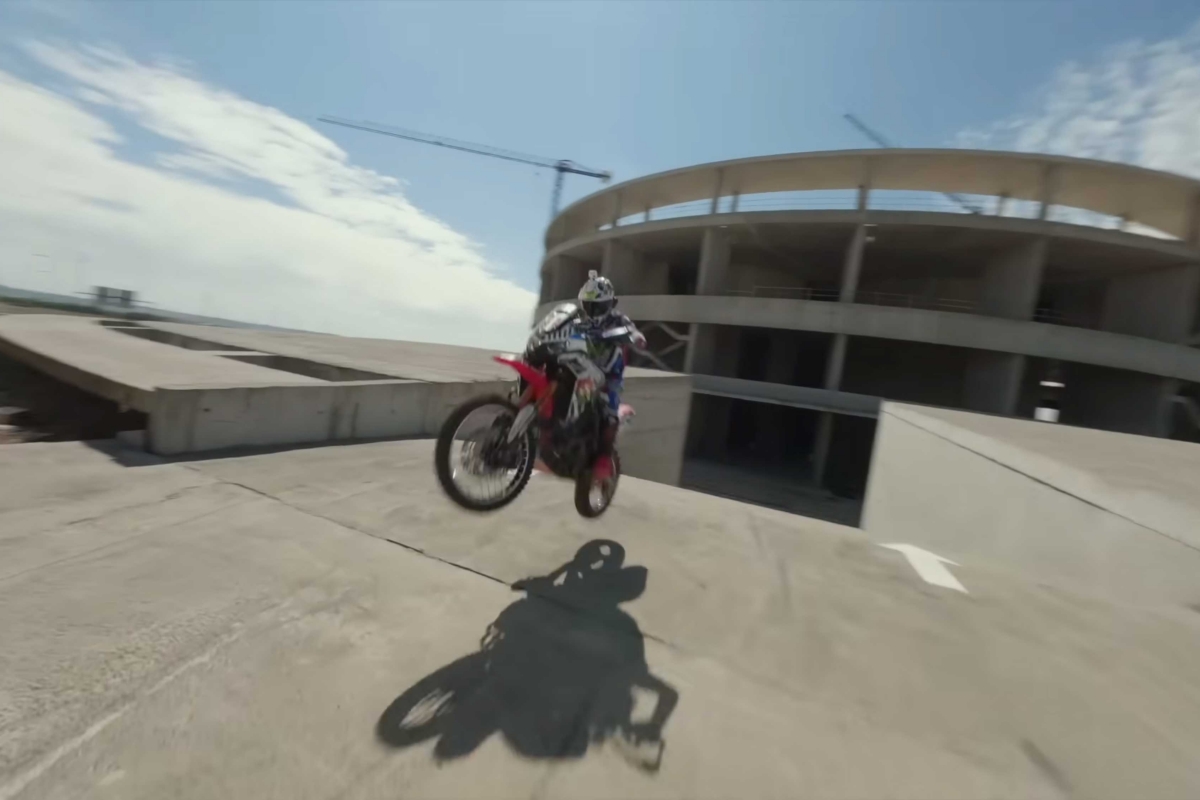 O piloto espanhol Kirian Mirabet e a sua Honda Africa Twin protagonizam a segunda parte da sua espetacular Gymkhana, filmada no cenário ao estilo de James Bond das instalações de Desguaces La Torre.