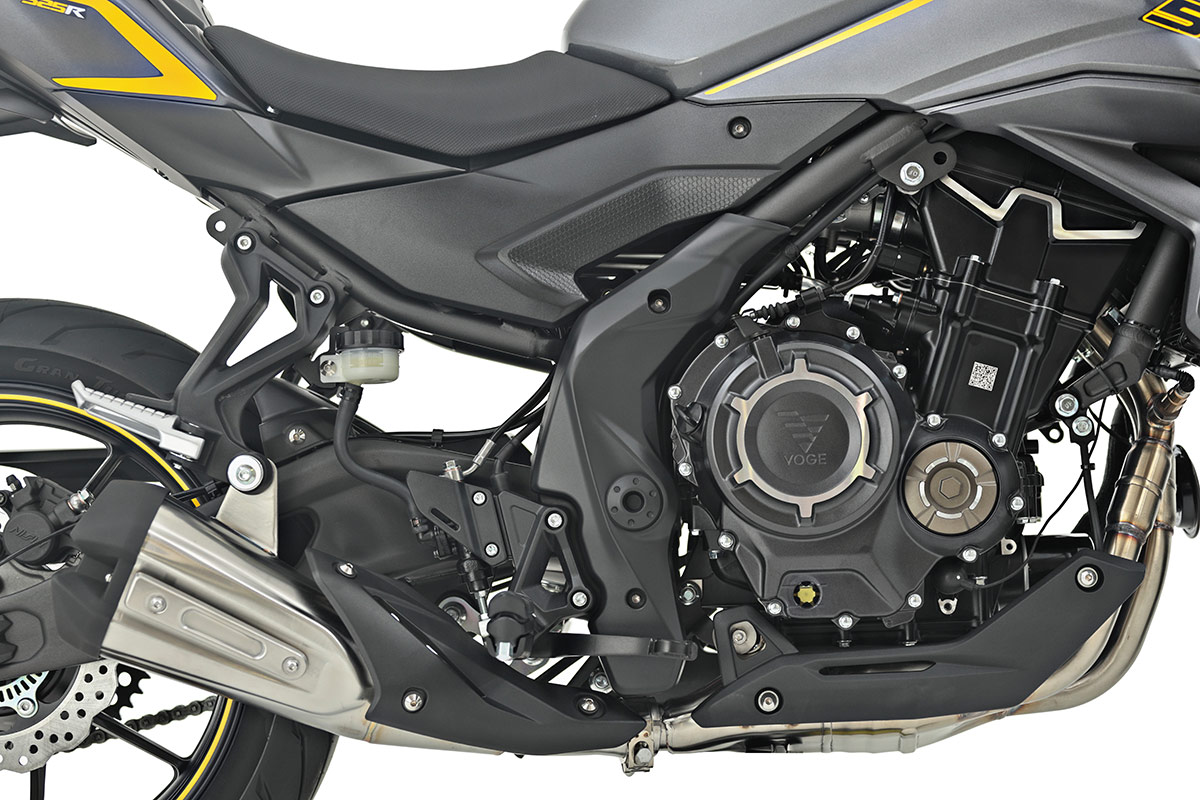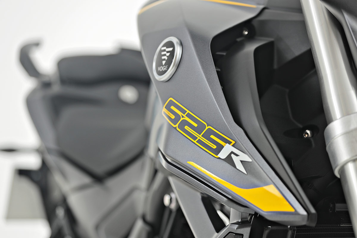 Com o modelo naked 525R, a Voge culmina a metamorfose da sua gama de cilindrada média. A principal mudança reside na adoção do novo motor bicilíndrico paralelo que foi modificado interiormente, aumentando a cilindrada até aos 494 cc, com uma notável melhoria no binário. Juntam-se novos esquemas de cores mais atuais e painel de instrumentos com ecrã digital a cores, mantendo componentes de qualidade de marcas de topo e um atraente preço de lançamento.