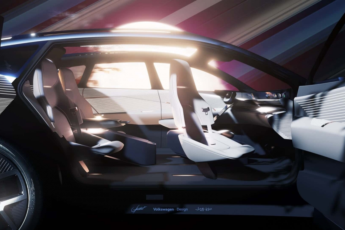 Podem viajar quatro pessoas em assentos individuais semelhantes aos de um avião, que podem rodar para facilitar a entrada e saída, bem como reclinar-se para dormir. A Volkswagen diz que o interior deste conceito elétrico é uma sala de estar configurável, com conetividade online, tudo revestido com materiais da mais alta qualidade, amigos do ambiente e não derivados de animais.