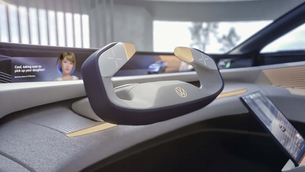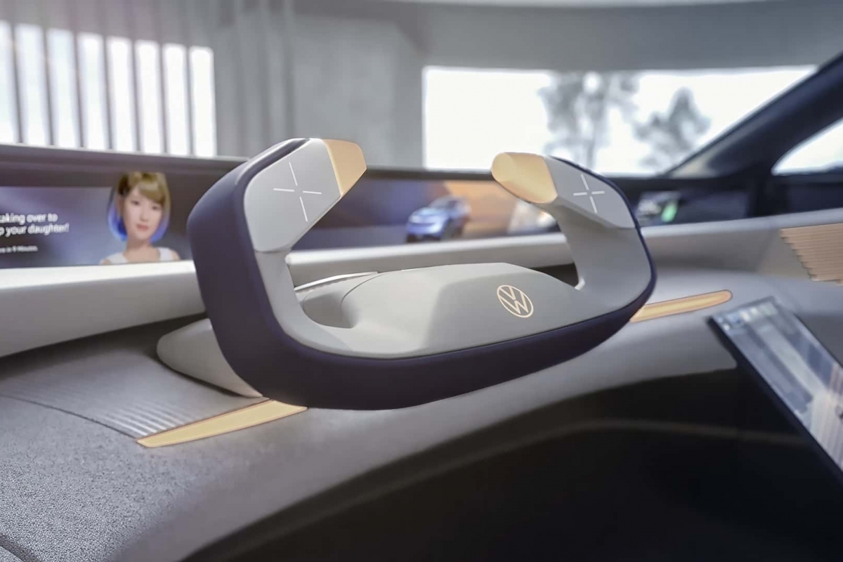 Quando o chamado Piloto Central é ativado, o volante em forma comando retrai-se para dentro do painel de instrumentos, fazendo com que o habitáculo se assemelhe mais a uma cápsula “espacial” do que a um veículo convencional.