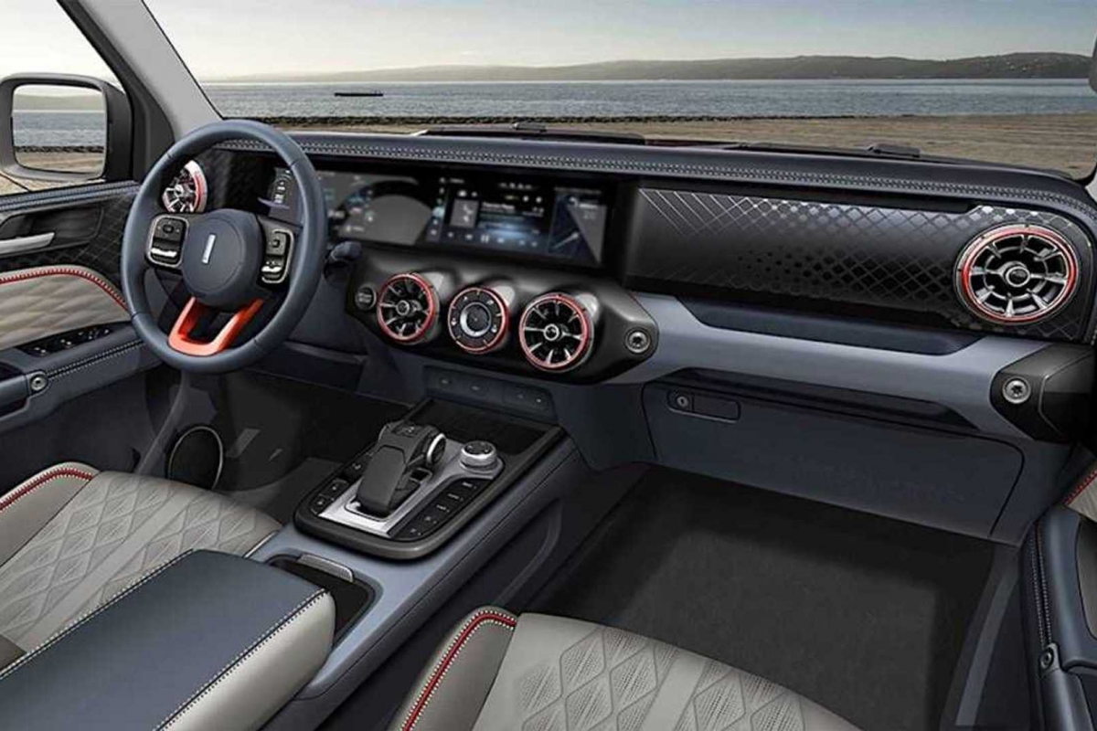 Se olharmos para o habitáculo, não há dúvida de que a inspiração vem do próprio Classe G. Basta olhar para o ecrã panorâmico, no qual estão integrados a instrumentação digital e o monitor do sistema multimédia. Da mesma forma, as saídas de ar com design de turbina são inspiradas em vários Mercedes-Benz.