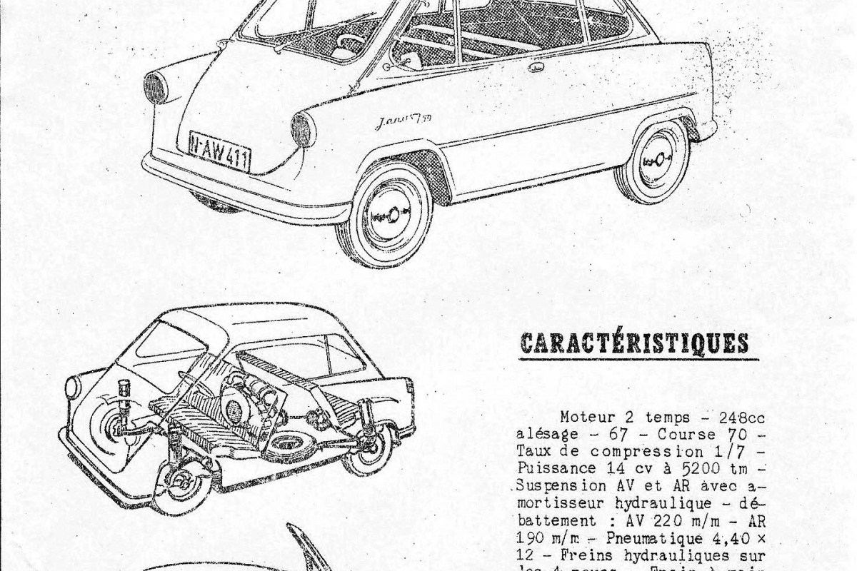 O motor foi montado em zona central e era de um cilindro a dois tempos arrefecido a ar, com 248 cc de cilindrada, produzindo 14 cv às 5.000 rpm, fazendo o Janus atingir uma velocidade de 80 km/h, ajudado pelo baixo peso de 425 kg. Este motor foi desenvolvido unicamente para este automóvel, mas tinha por base o utilizado pela moto Bella. Acoplado ao motor estava uma caixa manual de quatro velocidades com marcha atrás, operada por uma alavanca à esquerda do condutor. A suspensão independente nas quatro rodas foi desenvolvida para o melhor conforto possível, com sistema leading-arm na frente e eixo oscilante na traseira. O sistema eléctrico era de 12 volts e os travões de tambor nas quatro rodas eram hidráulicos, com alhetas para dissipar o calor.