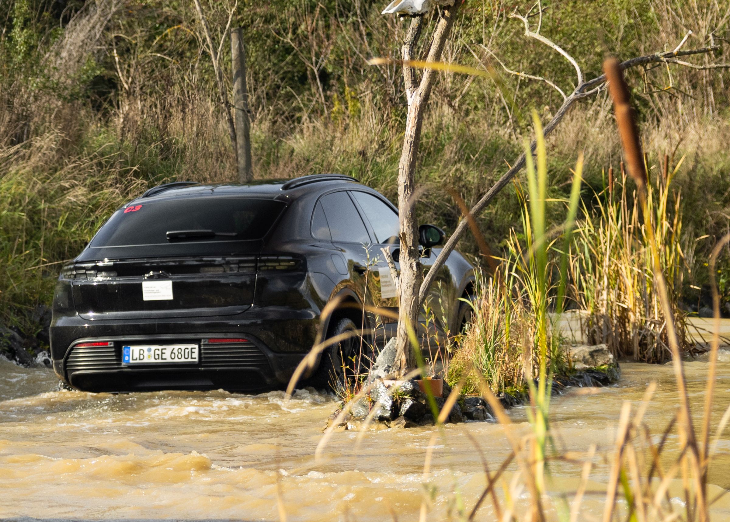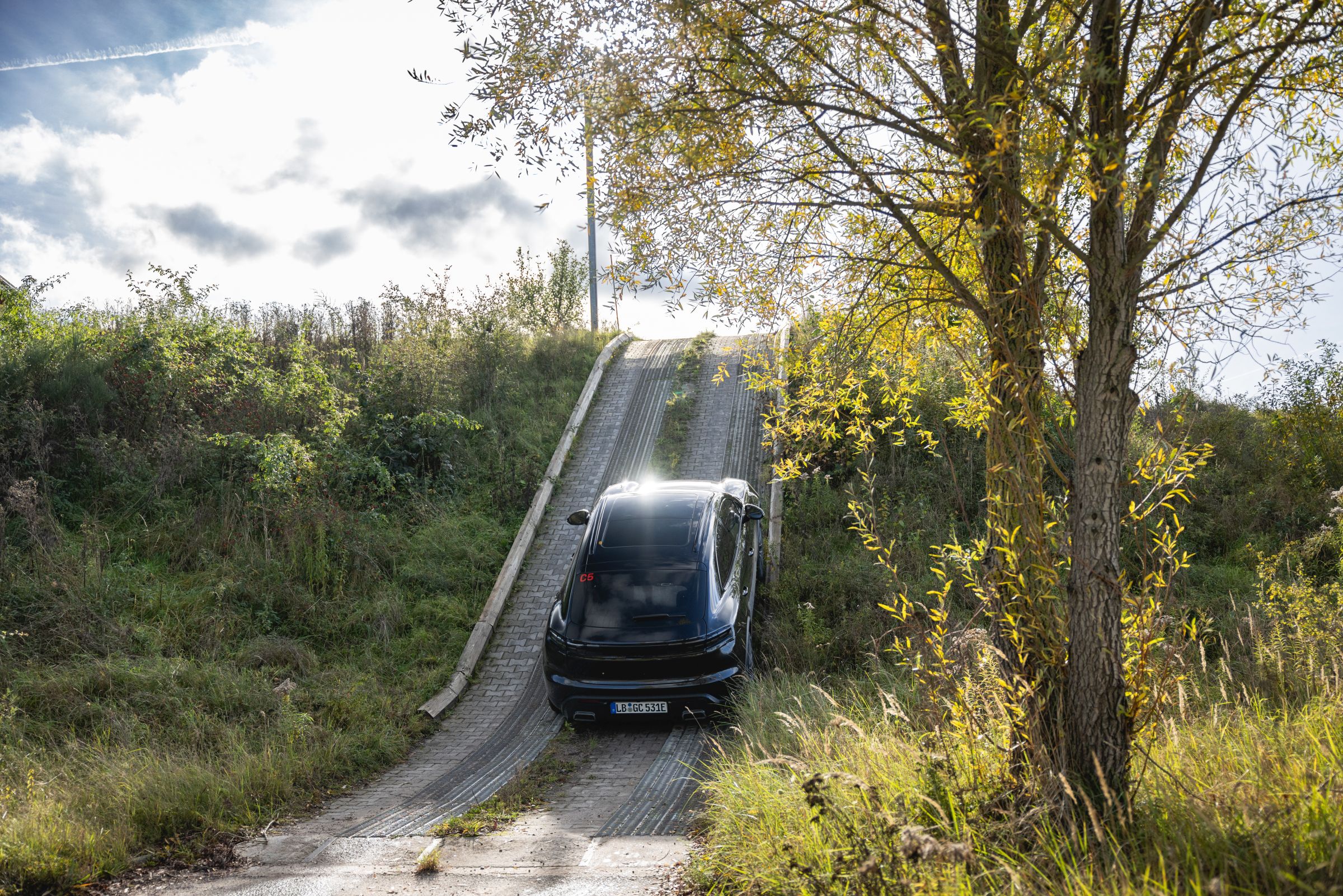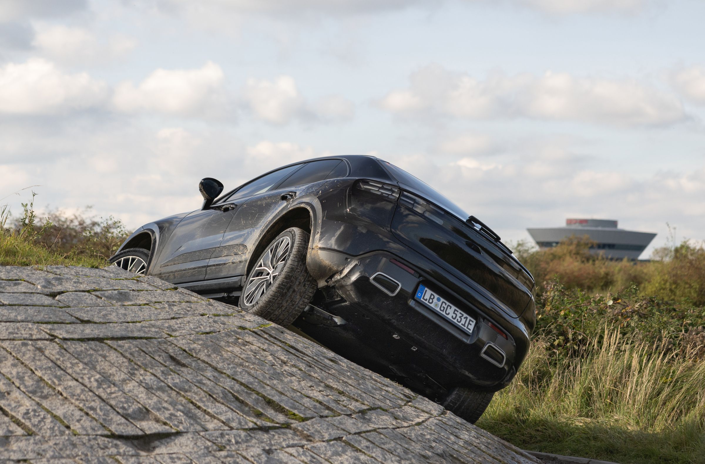 Mas, mais do que demonstrar a sua competência para superar os corta-matos de Leipzig, estes trajetos servem para assegurar a resistência e fiabilidade dos principais componentes do SUV elétrico, nomeadamente, a estanquicidade face aos elementos mais agrestes e a resistência a pancadas que possam ocorrer sob o piso, os quais poderiam ser potencialmente danosos para a bateria, por exemplo. O conforto e a forma como a suspensão absorve o mau piso também nos pareceu bastante boa, mesmo quando equipado com jantes de 21 polegadas que pouco apelam à prática do TT.