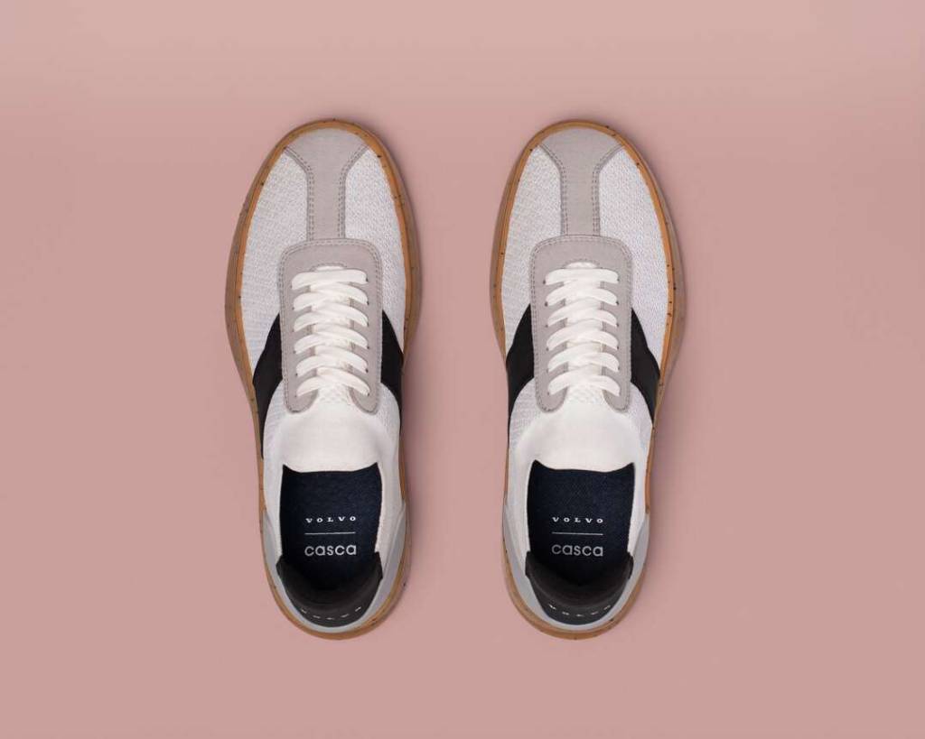 Na sola, os criativos utilizaram uma mistura com 10% de borrachas de pneus reaproveitados – uma estreia no calçado da marca Casca –, já as costuras utilizam sete garrafas PET recicladas, um composto também usado nos revestimentos dos interiores do XC40.