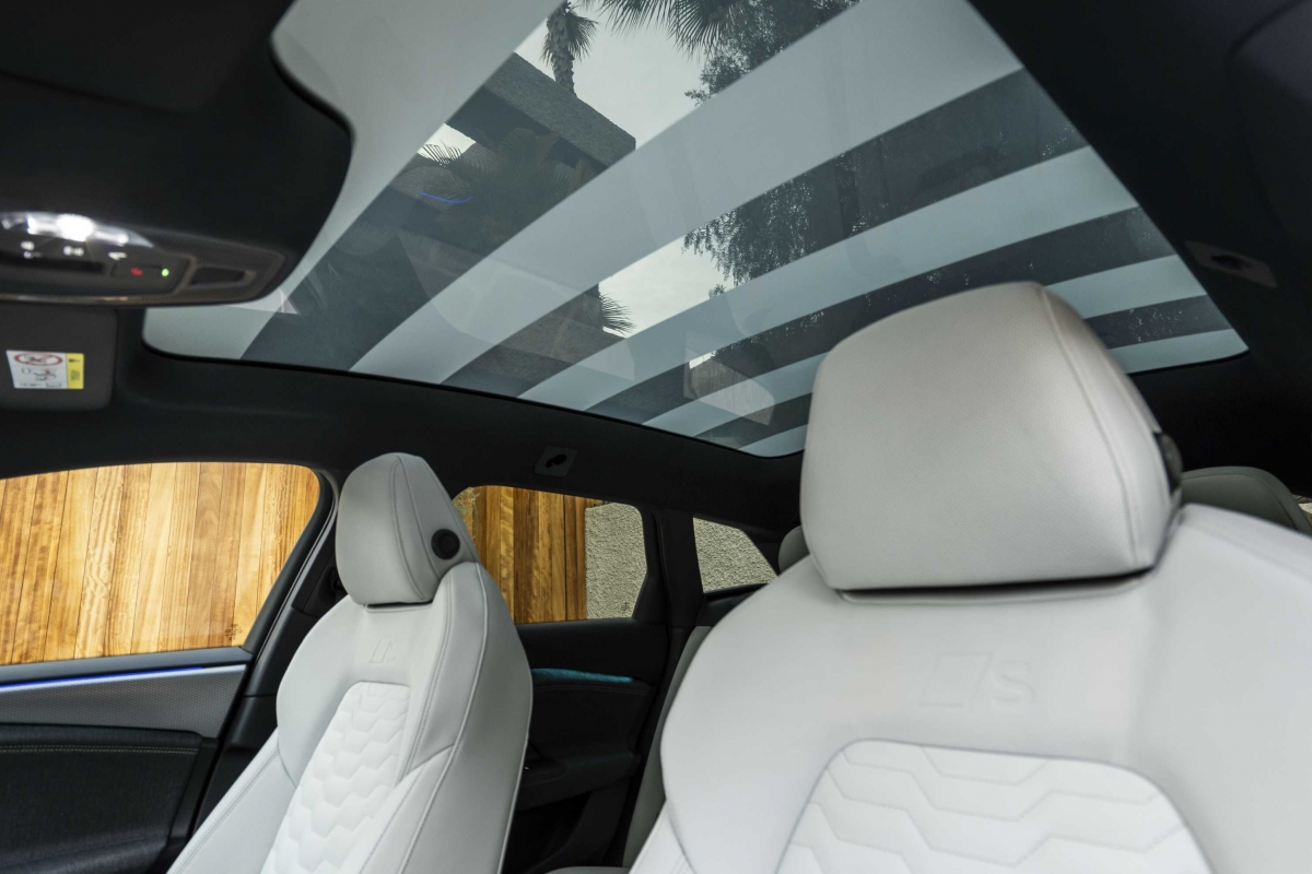 As maçanetas das portas embutidas e o piso plano e fechado contribuem para a obsessão aerodinâmica e existem cortinas activas na grelha dianteira que, segundo a marca, permitem uma autonomia de até mais 12 quilómetros. Os espelhos retrovisores com câmara, opcionais (1.600 euros), também conseguem o mesmo efeito, adicionando outros 12 quilómetros à distância que se consegue percorrer, mas requerem mais tempo para avaliar se a sua utilização é melhor face aos retrovisores tradicionais do que aquele que tivemos no nosso contacto.