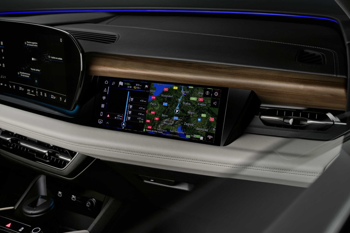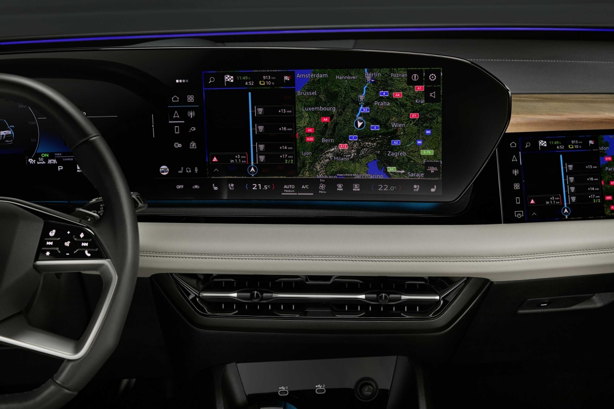 A mais recente filosofia de design e tecnologia digital do habitáculo da Audi assenta em grande medida num ecrã tátil central de infoentretenimento de 14,5 polegadas que recorre ao sistema operativo Android Automotive. Juntamente com o ecrã de 10,9” opcional para o passageiro, cria o que a marca chama de palco digital. Desta forma o passageiro da frente pode assistir a filmes ou séries em streaming, enquanto viaja, sem distrair o condutor, pois os conteúdos não são visíveis para quem está ao lado.