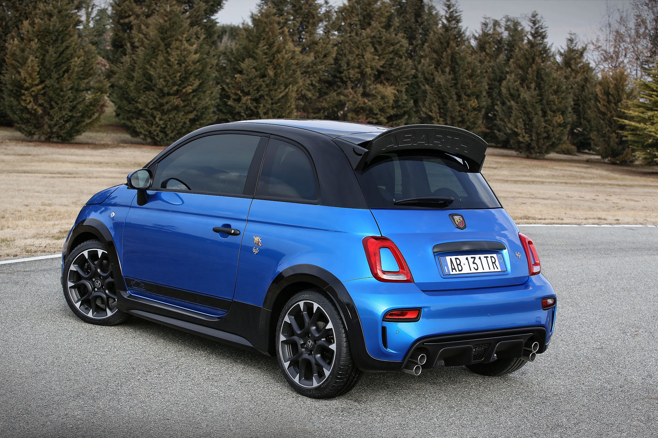 O Abarth 695 Tributo 131 Rally tem visual com referências específicas ao seu antecessor histórico, tal como a nova pintura bicolor metalizada Blue Rally, de três camadas, que reinterpreta a sua cor original numa tonalidade contemporânea.