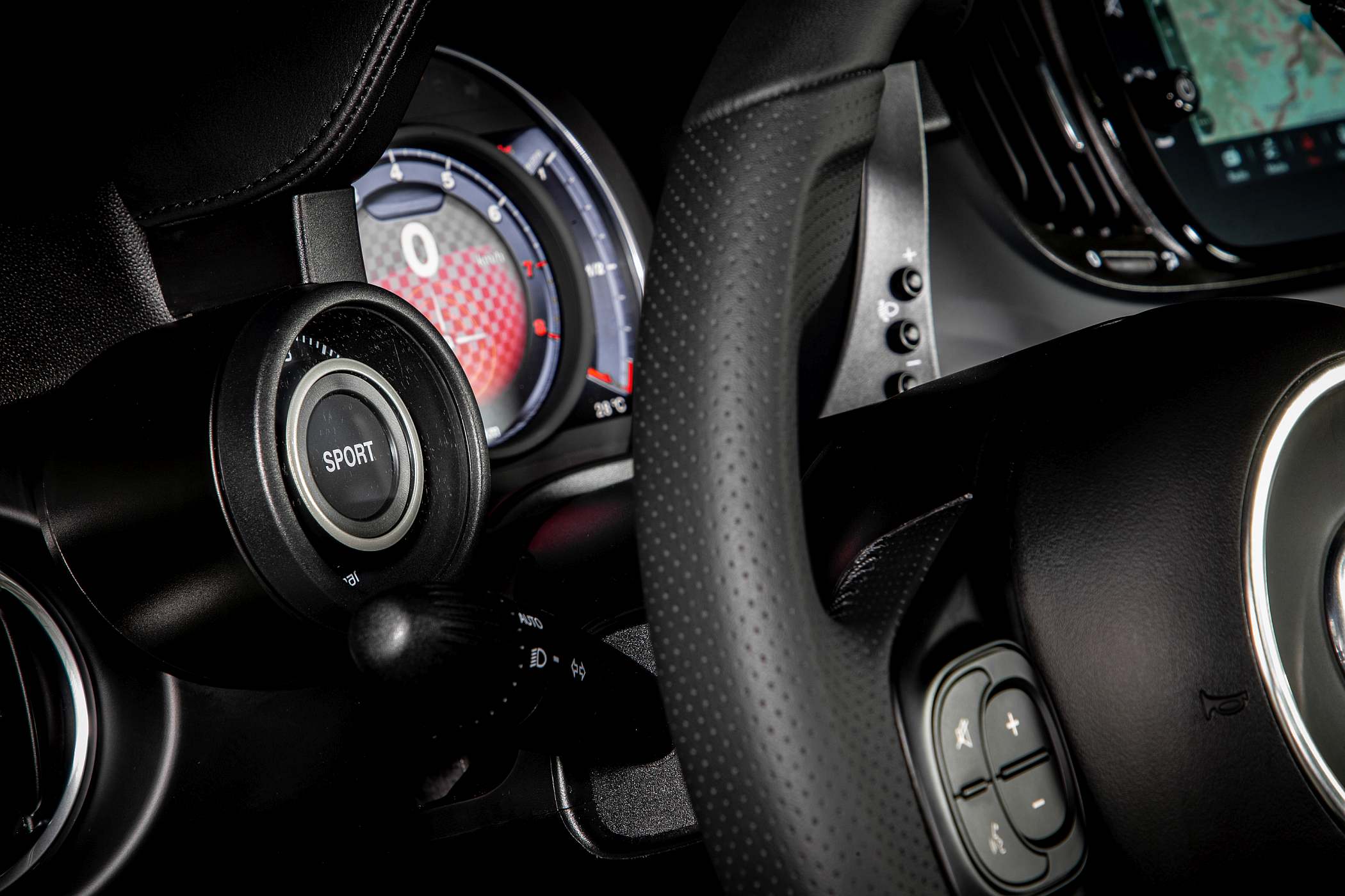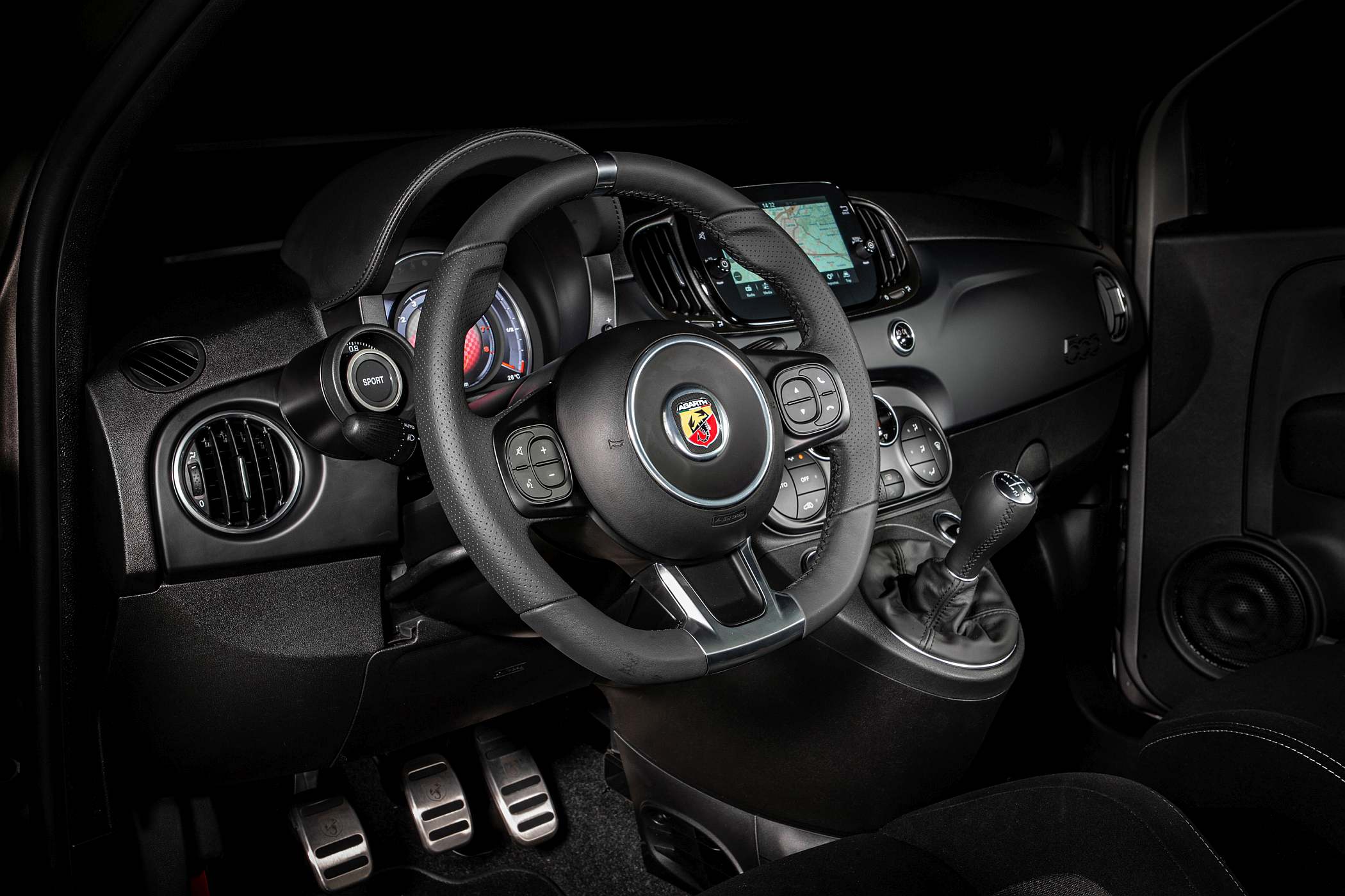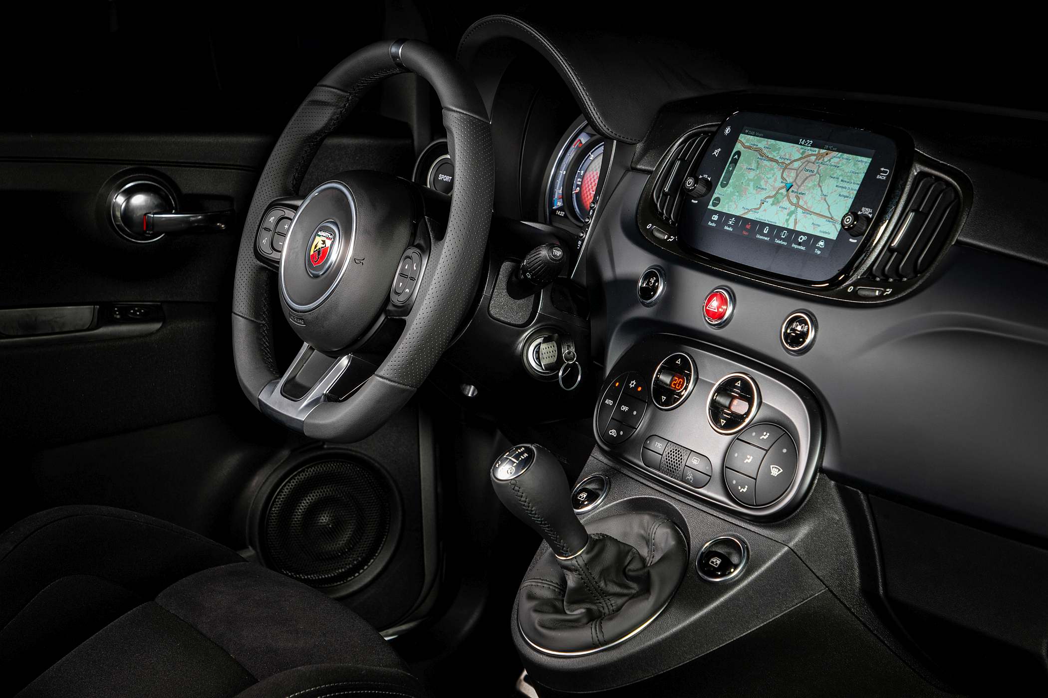 A mesma ousadia pode ser encontrada no seu interior: o volante em couro e os bancos desportivos Abarth (os bancos Sabelt, ao mais puro estilo de competição, estão disponíveis opcionalmente) contribuem para um ambiente vincadamente desportivo, complementado por alguns detalhes de design em preto, tais como a nova moldura do sistema de infoentretenimento e o novo painel de instrumentos, em preto mate.
