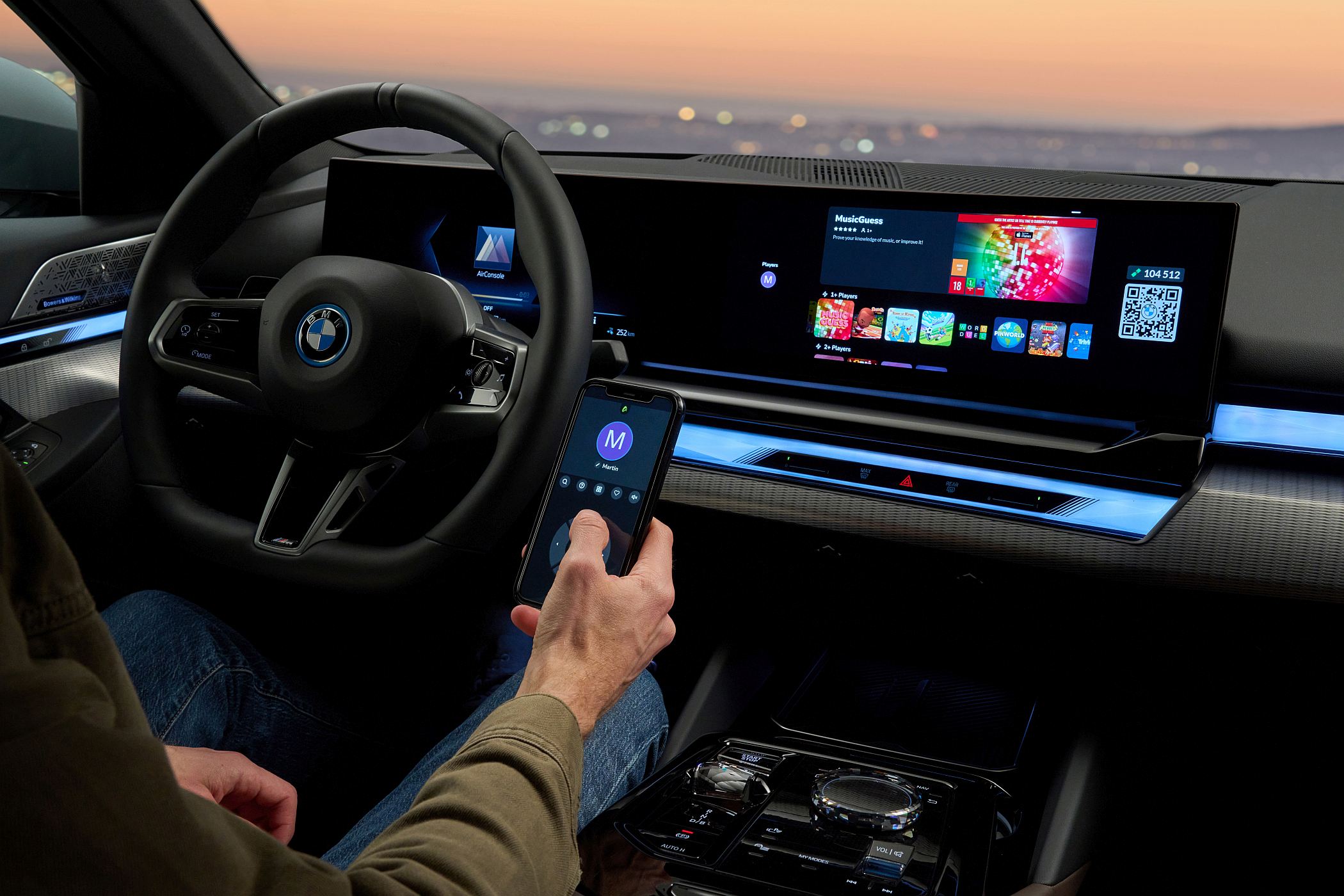 O novo Série 5 da BMW incorpora também uma estreia em termos de entretenimento para os passageiros, sob a forma de uma parceria com a plataforma de videojogos AirConsole, que permite assim utilizar o ecrã central e os smartphones para se distraírem enquanto estão parados num posto de carregamento, por exemplo.