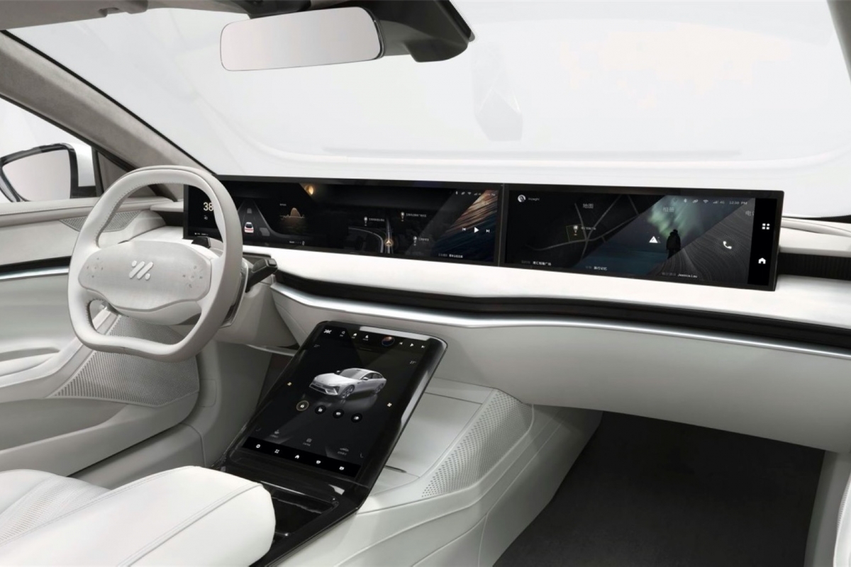 No interior, destaque para a digitalização do painel de bordo através de um ecrã inteligente de 39 polegadas com resolução 4K, o primeiro deste tipo instalado num automóvel, e com sistema operativo próprio.