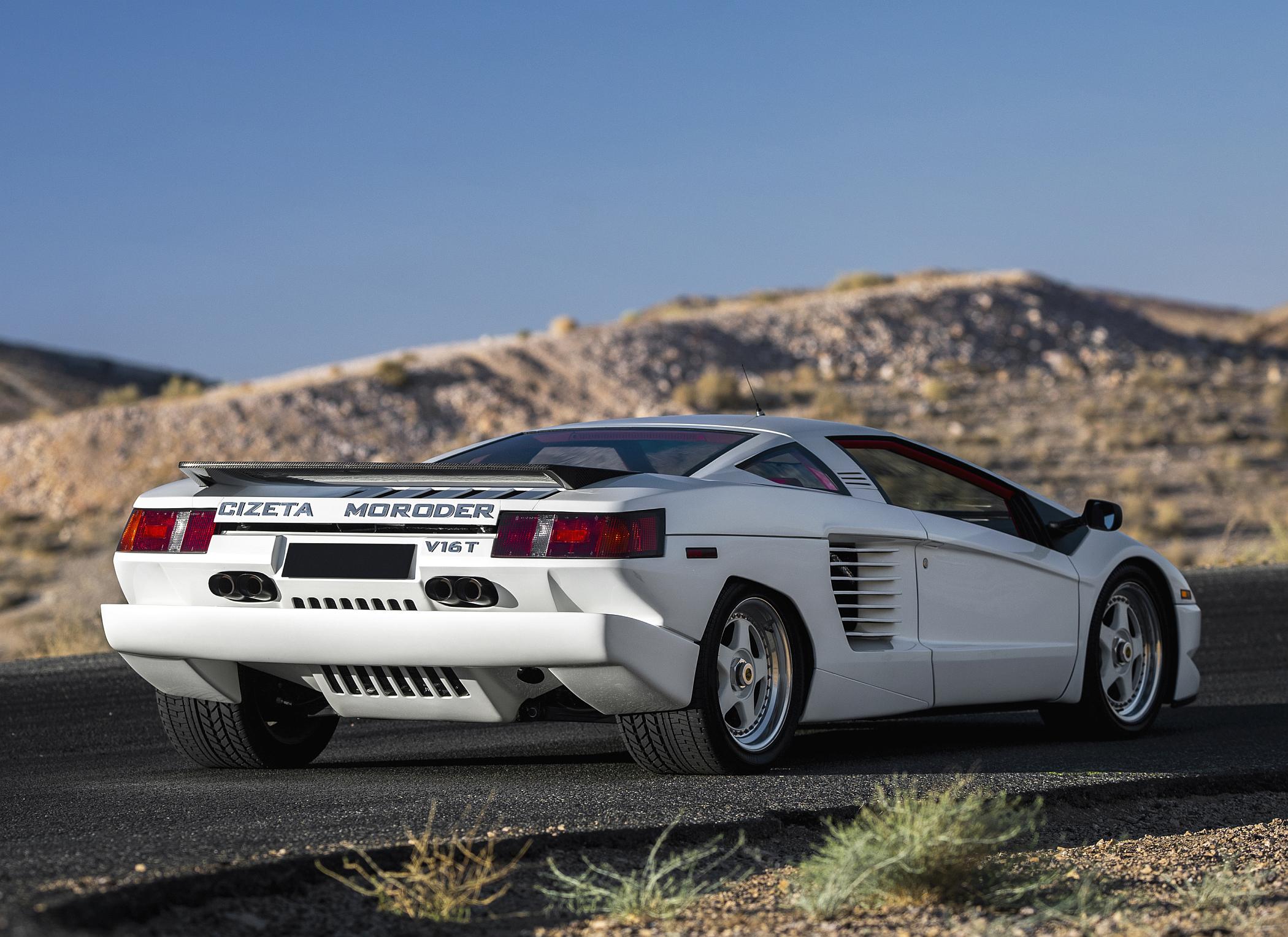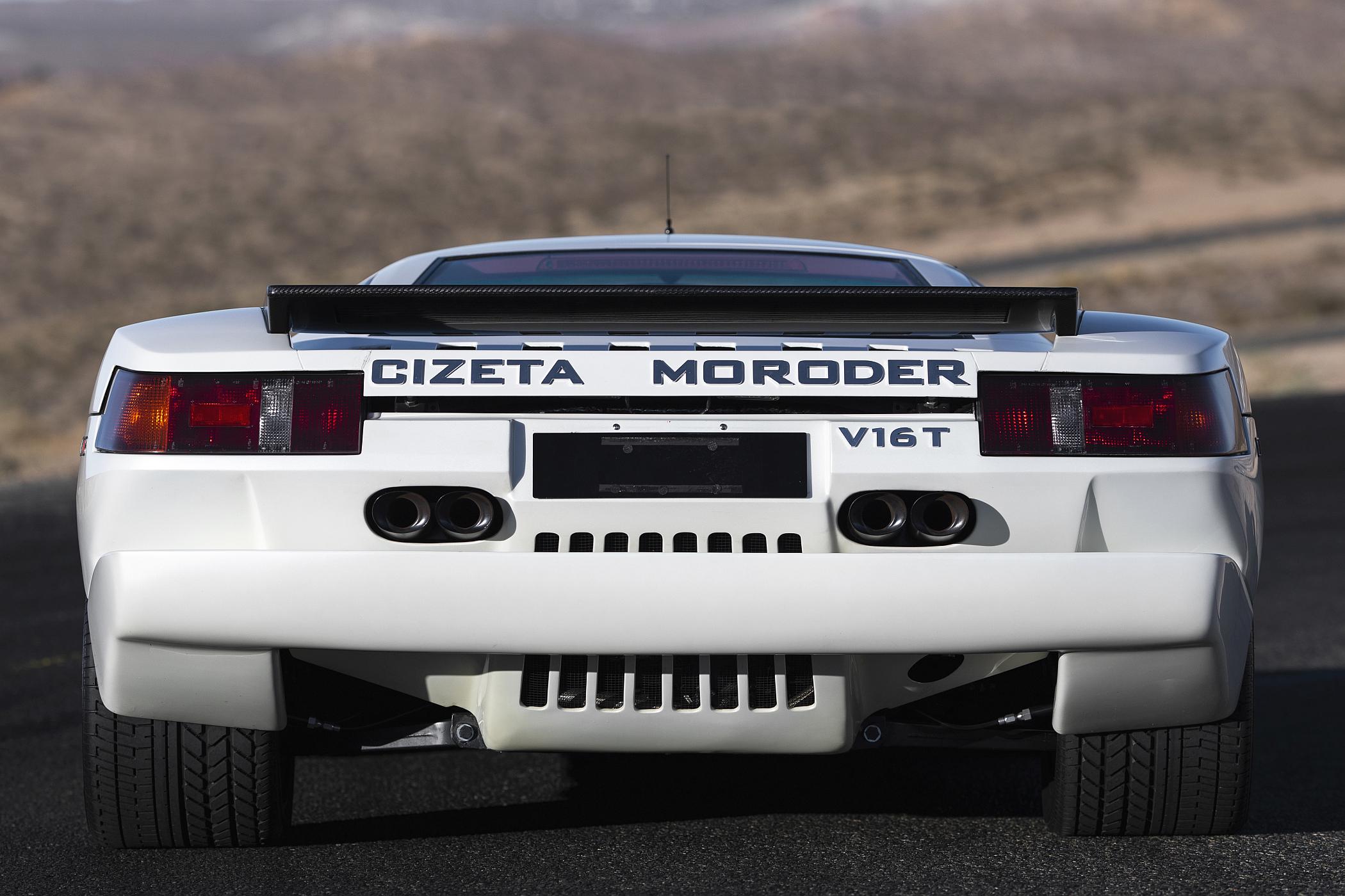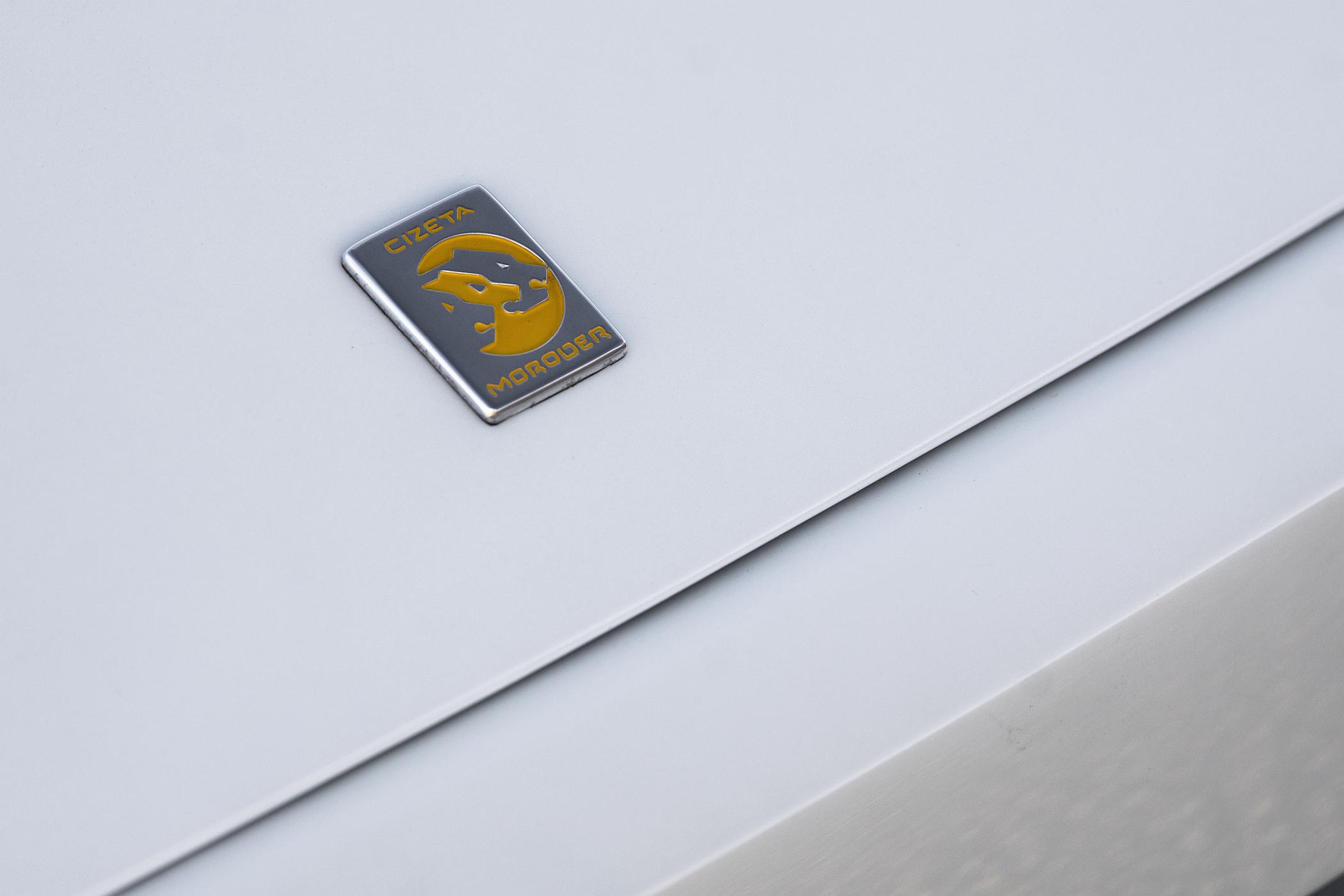 No caso do automóvel, este é o Cizeta-Moroder em versão protótipo, sendo o exemplar mais famoso daquela marca, até porque é o único chassis com o nome do músico italiano. O chassis ‘001’ foi exposto nos salões de Los Angeles de 1989 e de Genebra em 1988, tendo recebido em 2018 uma renovação mecânica profunda. Esta unidade está totalmente funcional e conta com diferenças significativas face ao modelo de produção posterior.